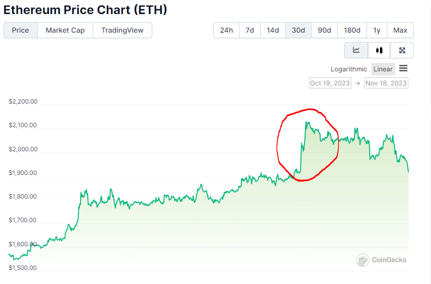 ETH made some big moves during the Blackrock ETF announcement/leak but looks like it's retracing quite hard right after, maybe people expect that ETF to take as long as BTC if not longer due to risks of it being more of a security than BTC. Could be a good entry point here soon for longs.