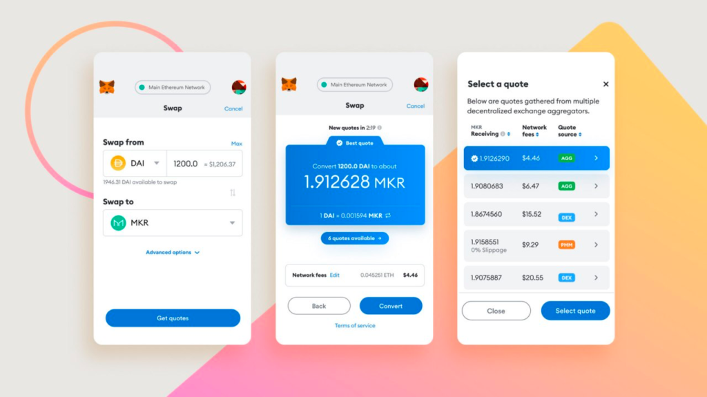 The MetaMask wallet team will launch an interface that combines several decentralized exchanges and aggregators to exchange tokens directly through the wallet.