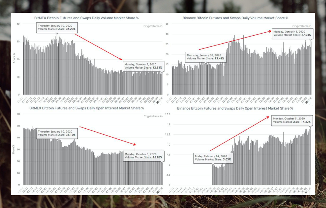We are watching BitMex lose ground, while Binance Futures, on the contrary, is taking the lead.