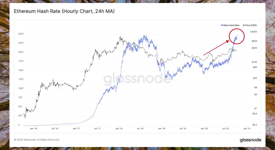 The growth of the hashrate occurs in parallel with the stable growth of network activity - since the beginning of 2020, the volume of transactions in the Ethereum blockchain has increased by more than 10-fold. And in Bitcoin, this figure has increased by 44% over the same period. This is due to the popularity of decentralized finance (DeFi). At the same time, the ETH price is still 76% lower than its January 2018 record highs.