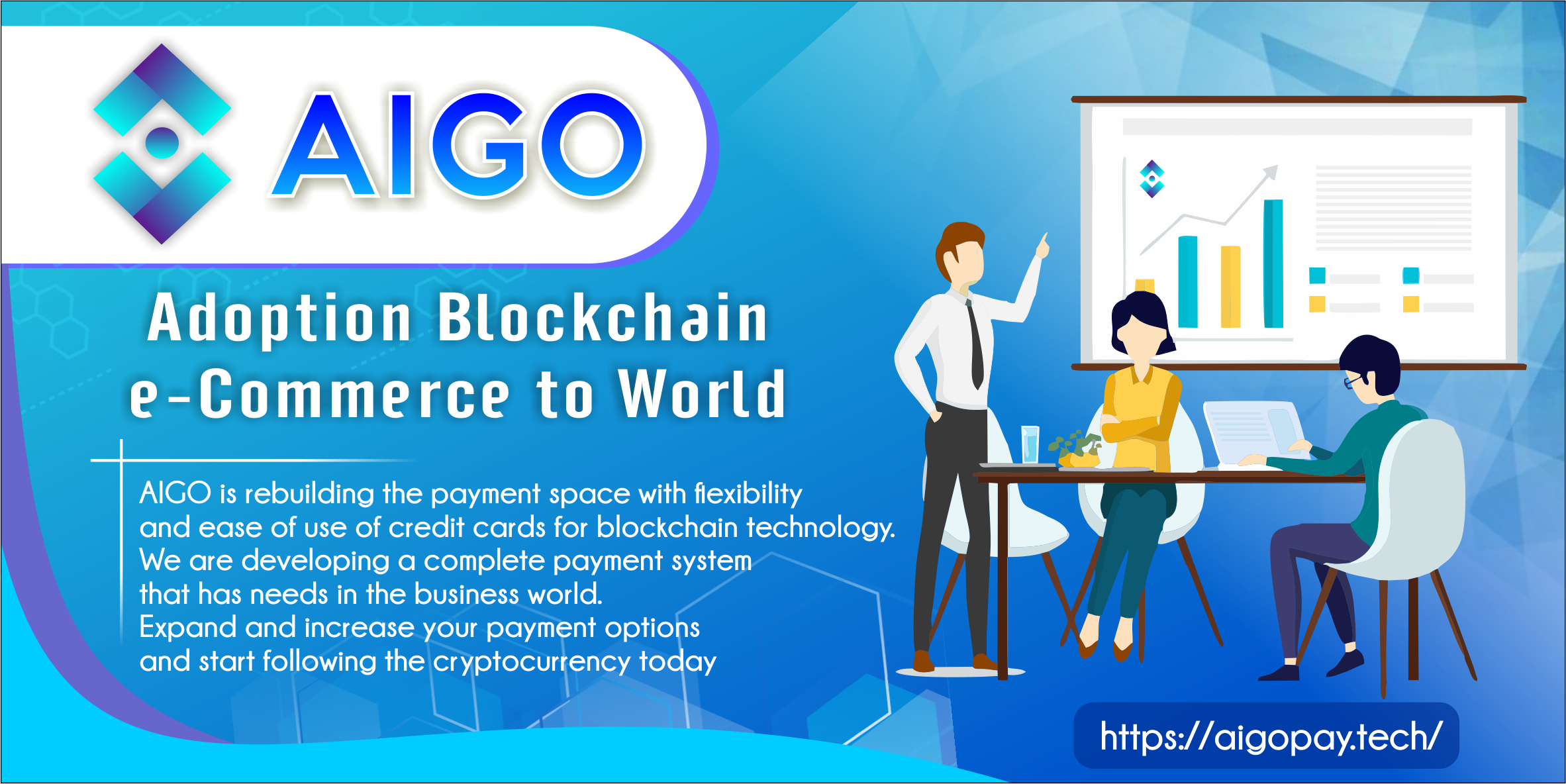 AIGO is reconstruction the payment area with flexibility and simple use of credit cards for blockchain technology. we have a tendency to ar developing a whole payment system that has wants within the business world. Expand and increase your payment choices and begin following the cryptocurrency these days.