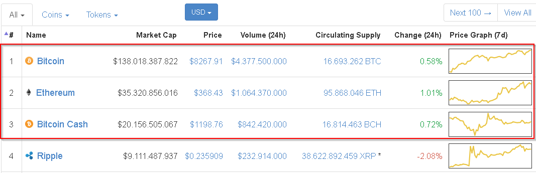 Somit sind die 3 aktuell größten Kryptowährungen bei bitcon.de handelbar.