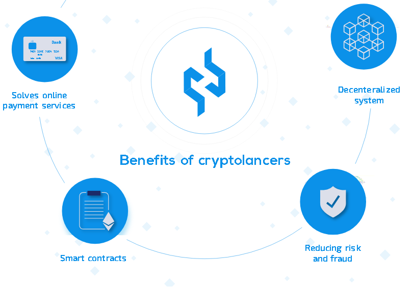 CryptoLancersエコシステムは、分散コンピューティングを使用して、既存のシステムに固有のオンライン決済サービスのトランザクション問題を単一の分散型ピアツーピアプラットフォームで解決します。分散型ブロックチェーンテクノロジとスマートコントラクトは、信頼できないプラットフォームでの顧客のプロジェクトへの支払いを容易にし、詐欺の危険性を大幅に低減し、取引相手のリスクを軽減します。