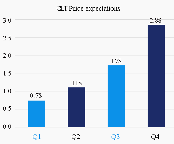年末までに流通すると予想されるCLTの数は、60,000,000であり、各ラウンドについて十分に研究されたパーセンテージに基づいて2回で販売される。ここから、2018年の推定CLT価格予測を試してみることができます。パネリストの1Qあたりの価値予測の予測に基づき、CLTの予測市場は0.7 $に固定されています。CLT価格は、引き続き上昇し、様々な比率で、第2四半期の1.1 $から第3四半期の1.7 $に引き上げられます。Q4では、CLTの価格は2.8ドル高いと予測されています。CLTの価格予測は、年末までに流通する予定のトークンの数と、年末までにトークンとコインの価値のパネリスト予想を使用して計算しました。