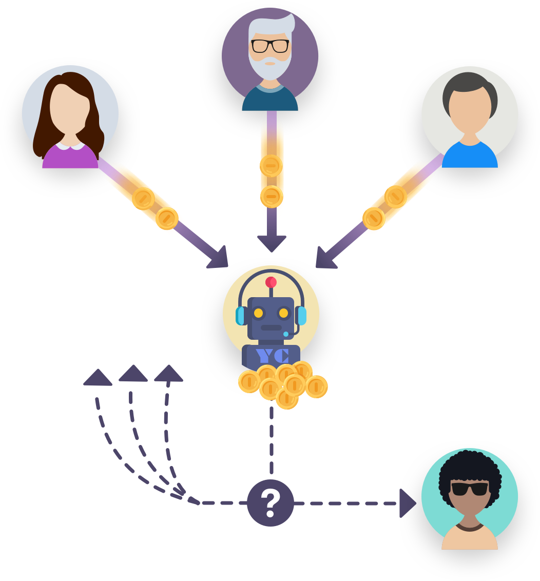 The YOC platform gives an opportunity to avoid it. It’s possible to give the management of all these processes to the robot which is impartial and will carry out all necessary actions according to the conditions which are written down in a smart contract. It would absolutely commit no mistakes. Allocate with an opportunity to vote for acceptance of important questions of the organization life of all participants according to a share of their general participation.
