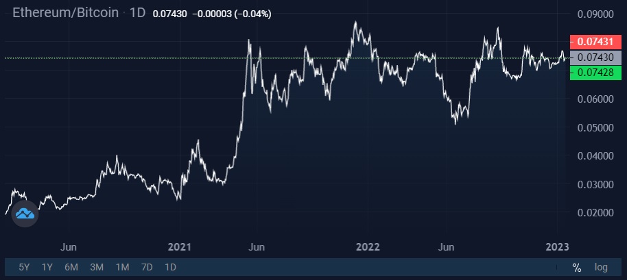 The renewed interest in Ethereum could have caused the altcoin to strengthen against Bitcoin. However, it didn't gain a leg up for several reasons, including the significant contraction of the NFT and DeFi sectors in 2022, as well as regulators' close attention to Ethereum due to its transition to PoS and the network's increased centralisation.
