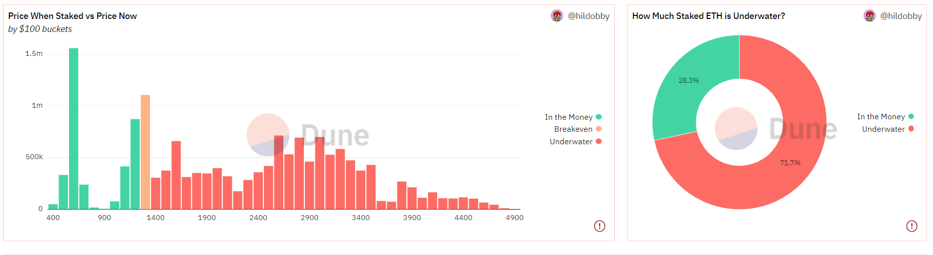 Shanghai, Ethereum's hardfork in March will remove limits, something that could cause some validators to want to sell off their ETH. Right now, 72% of their coins are 'underwater', i.e., suffering unrealised losses. Most validators expected the coin's value to rise after it transitioned to PoS, but those hopes have not materialised.