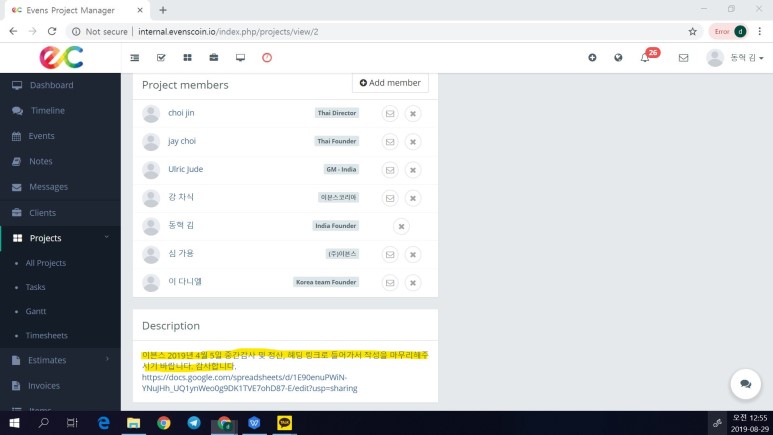2019년 4월 5일자로 상세한 자료를 요청했으나 인도팀 외에는 아무도 경비내역을 올리지 않았다. 나는 개발에 치중하기 위해 잘 되던 공장(헤나)업무에서도 완전히 나와 인도돈 1.2렉만 월급으로 받고(한국돈으로 200만원가량) 5인가족이 최소한의 생활비로 개발에 최선을 다했다. 하지만, 한국에서는 상대적으로 많은 자금을 가지고 어느것 하나 비즈니스 답게 해나가지 못했다. 기술에 대한 이해력이 떨어지고, 실생활 프로젝트인데 코인 장사에만 치중하는 느낌이었다. 개발자이지만, 파운더의 자격을 줬으니, 또한 홀더들이 생각보다 많이 투자된 돈들이 있으니 그들을 돕고자 내 나름대로 블록체인 기술을 현실화하는데 최선을 다했다. 그러나 한국임직원들은 그러지 못했다. 지금 생각해보면 능력이 안되었다. 능력이 되는 사람은 올인하기보다는 저울 제기에만 바빳다.