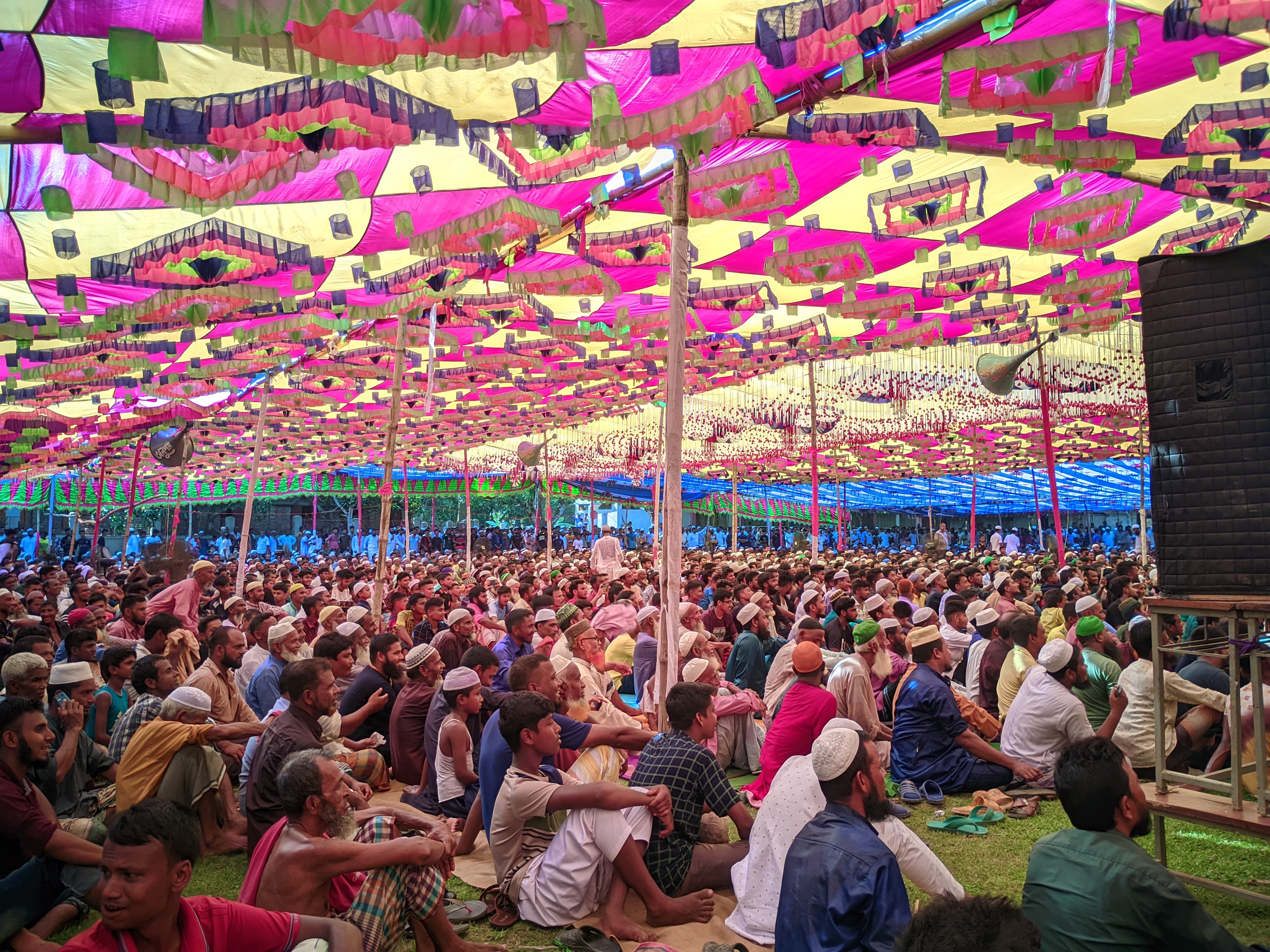 আমরা যোহরের নামাজ এর পর তিন জন মিলে রওনা দিলাম ওয়াজ মাহফিলের উদ্দেশ্যে। আমরা অল্প কিছু সময়ের মধ্যে সেখানে উপস্থিত হলাম। সেখানে উপস্থিত হয় দেখি হাজার হাজার মানুষ ওয়াজ শোনার জন্যে আসছে। এমনি ইউটিউবে আগে দেখতাম যে কতো মানুষ ওনার ওয়াজ শুনতে যায়। কিন্তু ঐদিন দেখে আমি একটু অবাকে হয়েছিলাম। তারপর আমরা গিয়ে সামিয়ানার নিচে বললাম তখন দ্বিতীয় বক্তা আলোচনা করছিলেন। ওনার ওয়াজ শেষ করার পর আমির হামজা হুজুর স্টেজে উঠলেন ওয়াজ করার জন্য। আমরা তো তিন জন একেবারে সামনি বসেছিলাম আমাদের ইচ্ছা ছিল যে আমরা হুজুর কে খুব কাছে দেখে দেখব। আর ওনার ওয়াজ শুনব। অনেক আগে থেকেই ওনার ওয়াজ শুনি। উনি খুব সুন্দর আলোচনা করেন কোরআন ও হাদিস থেকে। বিশেষ করে উনি যখন একটা কোরানের আয়াত তেলাওয়াত করেন সাথে সাথেই উনি বলেন যে এই আয়াত এই সুরার এতো নং আয়াত এতো নং পৃষ্ঠা এতো নাম্বার লাইন। এই বিষয়টা আমার কাছে খুব ভালো লাগে।