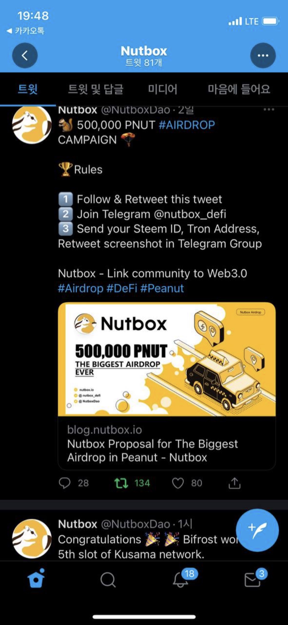 PNUT 에어드랍 공유 후 보팅 이벤트 참가합니다.. 허걱 늦은건가요;yonggyu01 (75)adminKo-Manin Event•현재 이벤트 정리 • 5 years ago 허거.. 30일 까지인줄 알았는데 글쓰면서 보니 19시까지네요.. 그래도 혹시모르니 적어봅니다 ㅠ 트위터에서 리트윗도 했구요 에어드랍도 받았습니다 ㅎㅎㅎ 계속 채굴중인데 듣자하니 피넛의 가격이 많이 올랐다고 하더군요 너무 기분좋네요 ㅎㅎㅎㅎ #dblog #zzan #aaa #pnut-airdrop