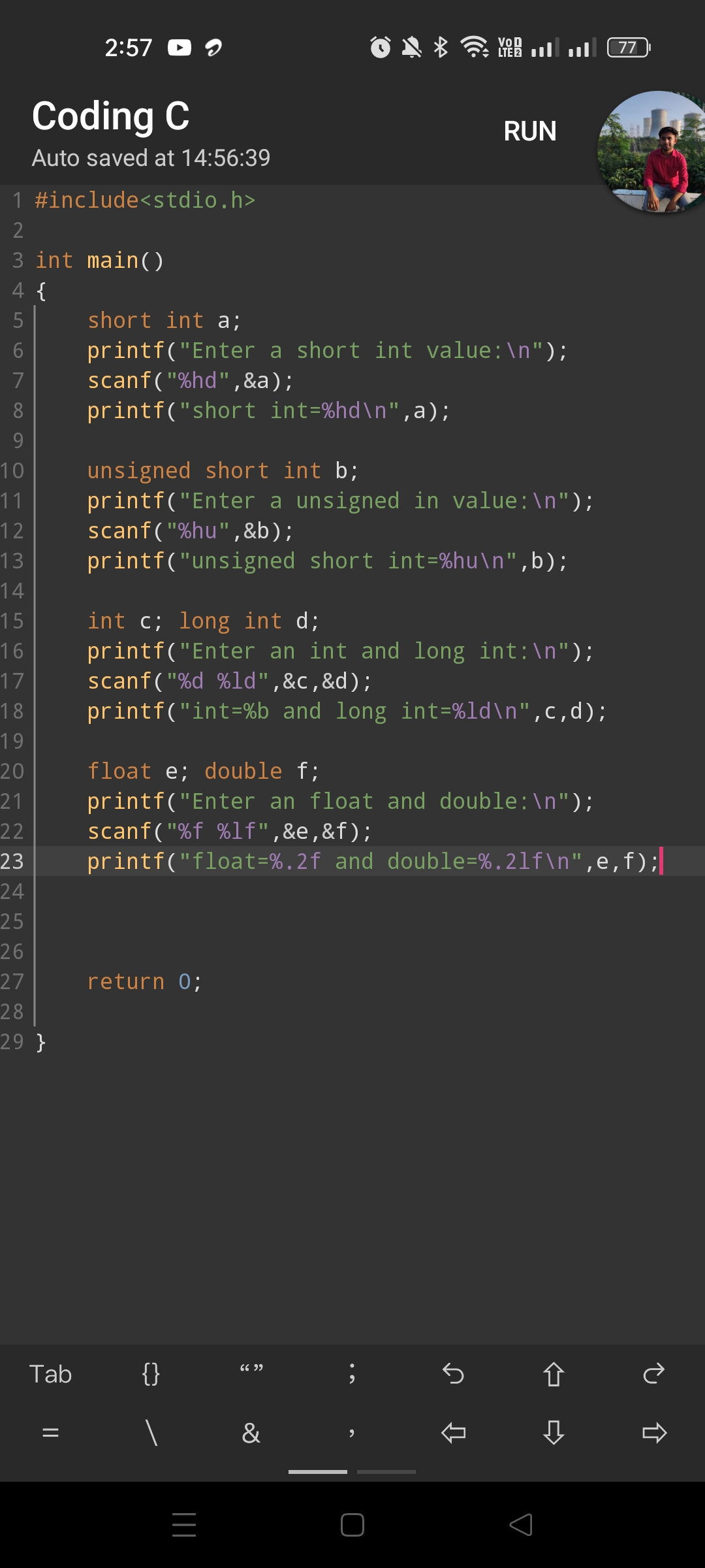 আমি যেহেতু এখনো ল্যাপটপ কিনিনি তাই ফোনের মধ্যেই কোডিং ছি অ্যাপ নামিয়ে সেখানে কোডিং প্রাক্টিস করছি। আমি প্রবলেম শীট এর প্রায় সব সমস্যা একে একে ফোনের মধ্যেই কোডিং করে সমাধান করতে থাকি। আমার রুমমেট ৩য় সেমিস্টারে পরে তাই কোথাও আটকে গেলে বা সমস্যা হলে ভাই এর কাছে দেখায় নেই। আপনাদের কাছে আমার করা কিছু কোডিং তুলে ধরছি।