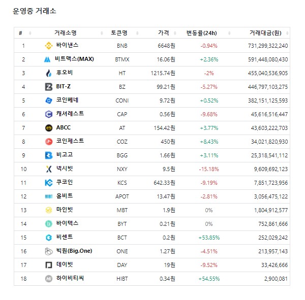 이 시각 거래소 코인 상황