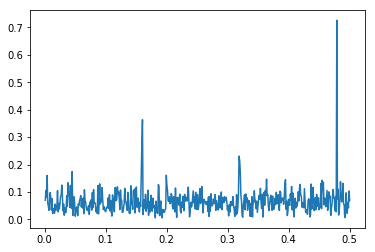 Looks pretty noicy, right, but then there is a hint of patterns. With our human minds, seeing spurious patterns is in our genes, so lets look what fourrier has to say.