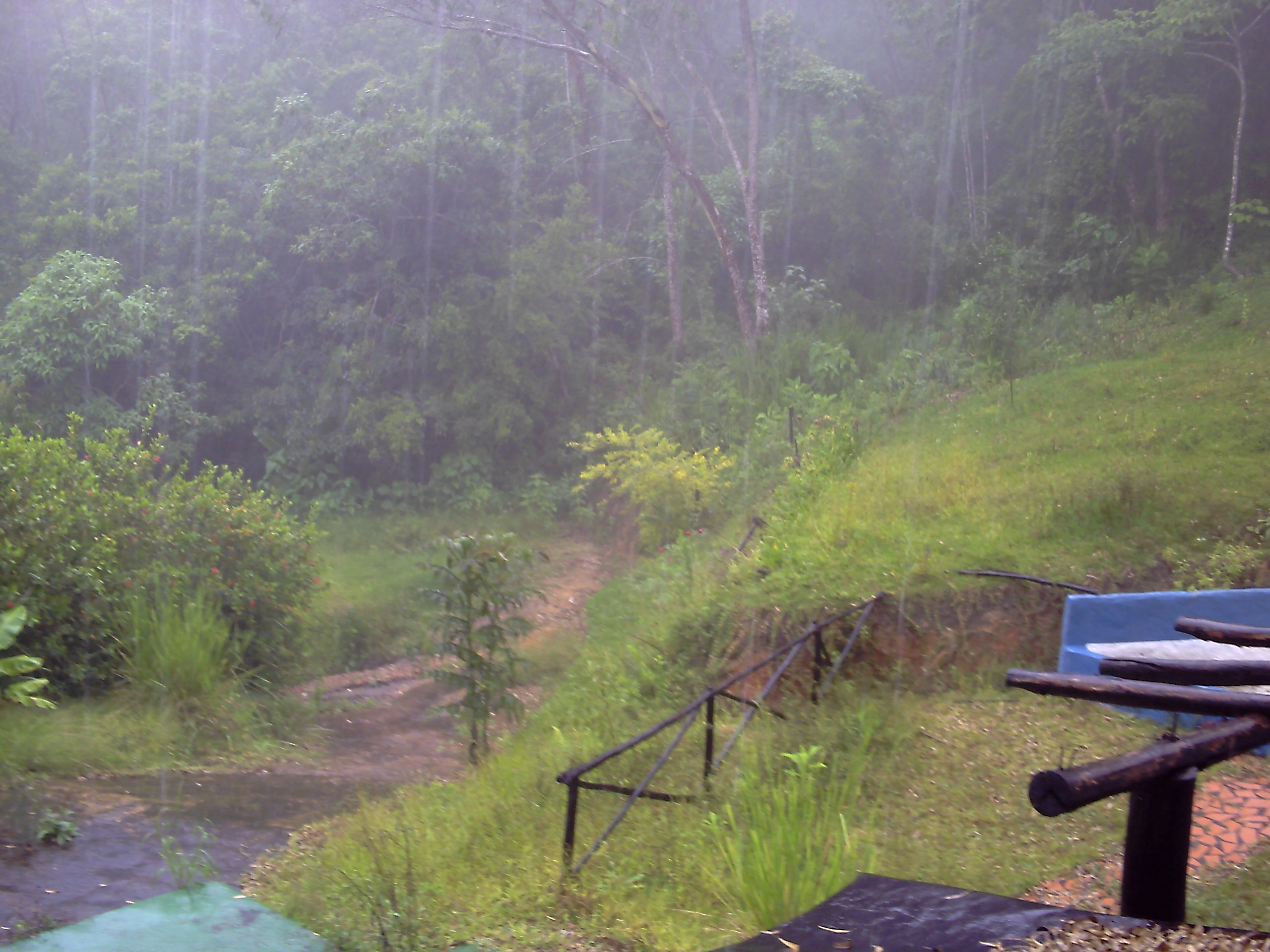 en el trascurso de la caminata notamos que se aproximaba un torrencial aguacero o llovizna así nos apresuramos a buscar un techo para que acampara solo conseguimos una especie de almacén donde solo había recuerdos y material de construcción y entre otras cosas