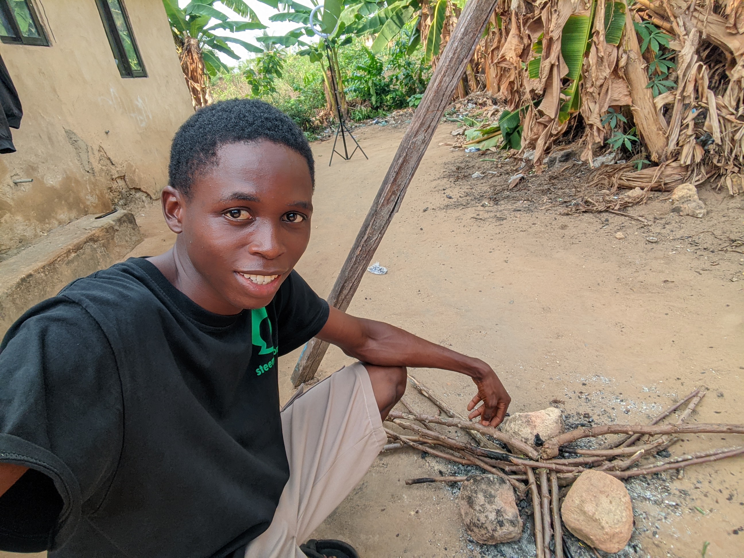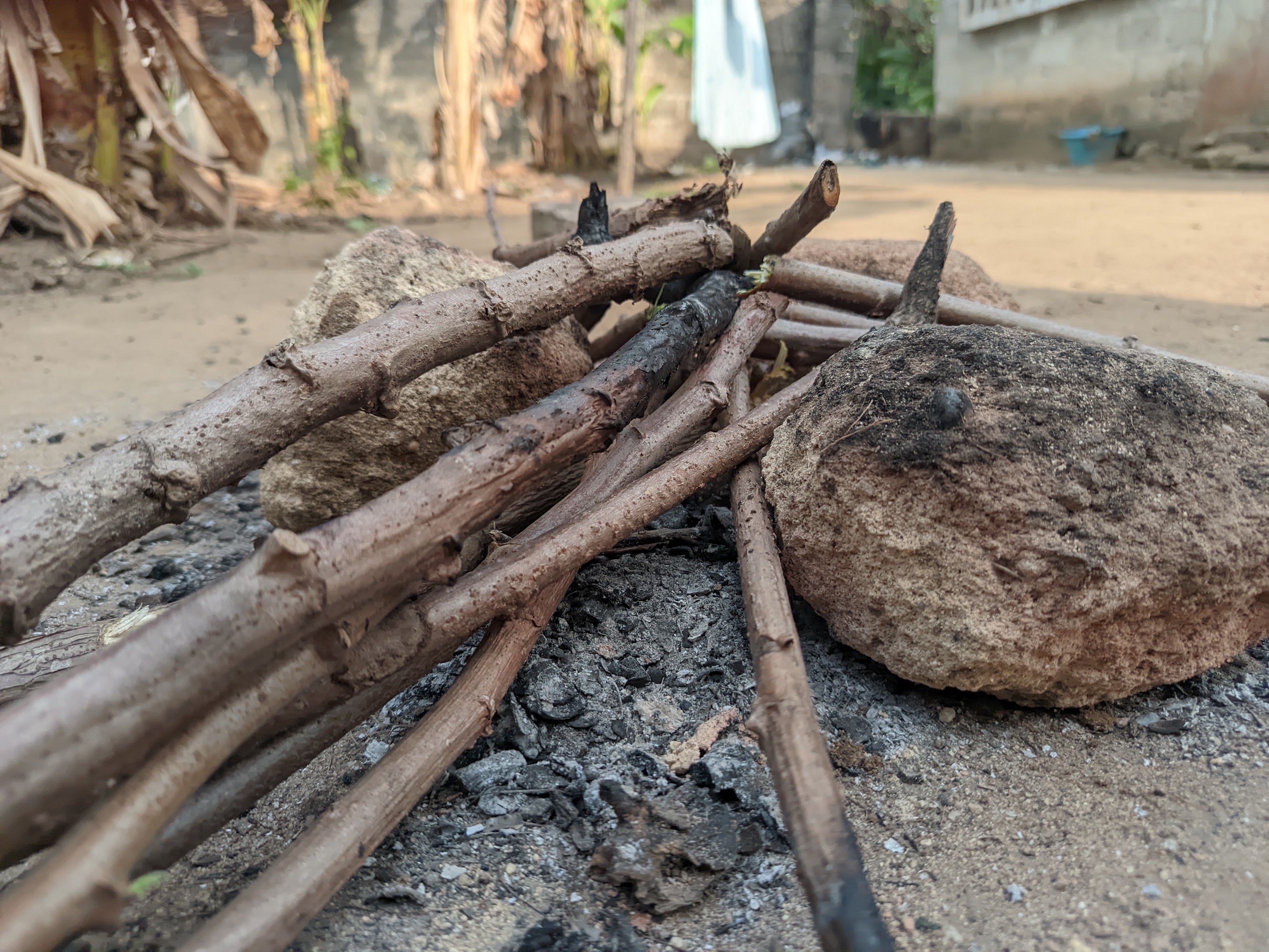 If you look closely you will see that the woods I gathered was in-between the space in the three stones I arranged in form of a tripod stand, a few months ago when I was home in the cold harmattan season, children gathered around fireworks like this to warm them self, another practical use of this fire setting is for cooking with the stones emcompasing this woods about we can place a pot above and cook, we can also use it for roasting fishes but in this case you won't let the fire ignite.