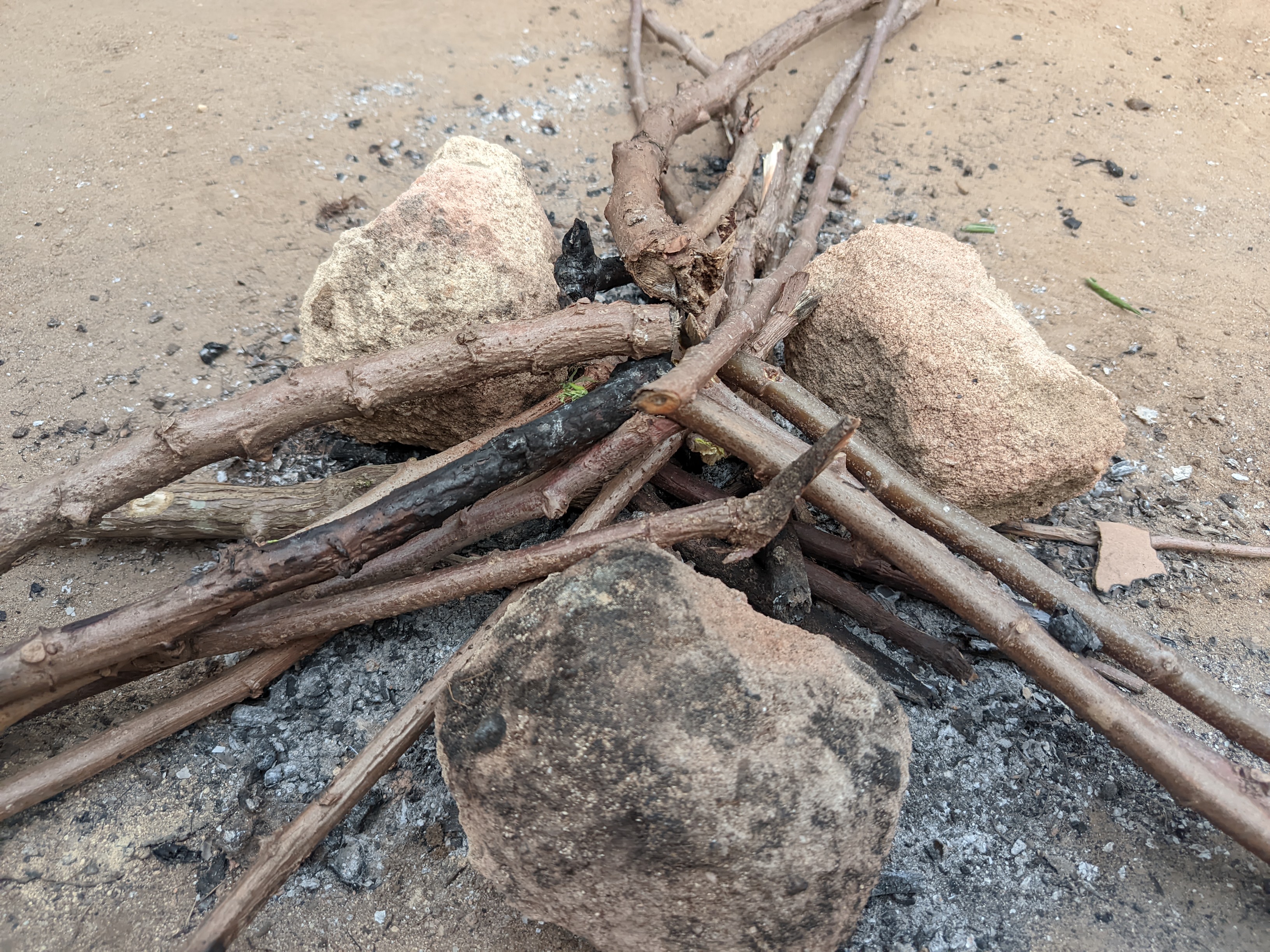 First I did was go fetch my wood in a nearby place, put some ashes from previous fire I made on the ground because it rained some time ago and the floor was a bit wet.