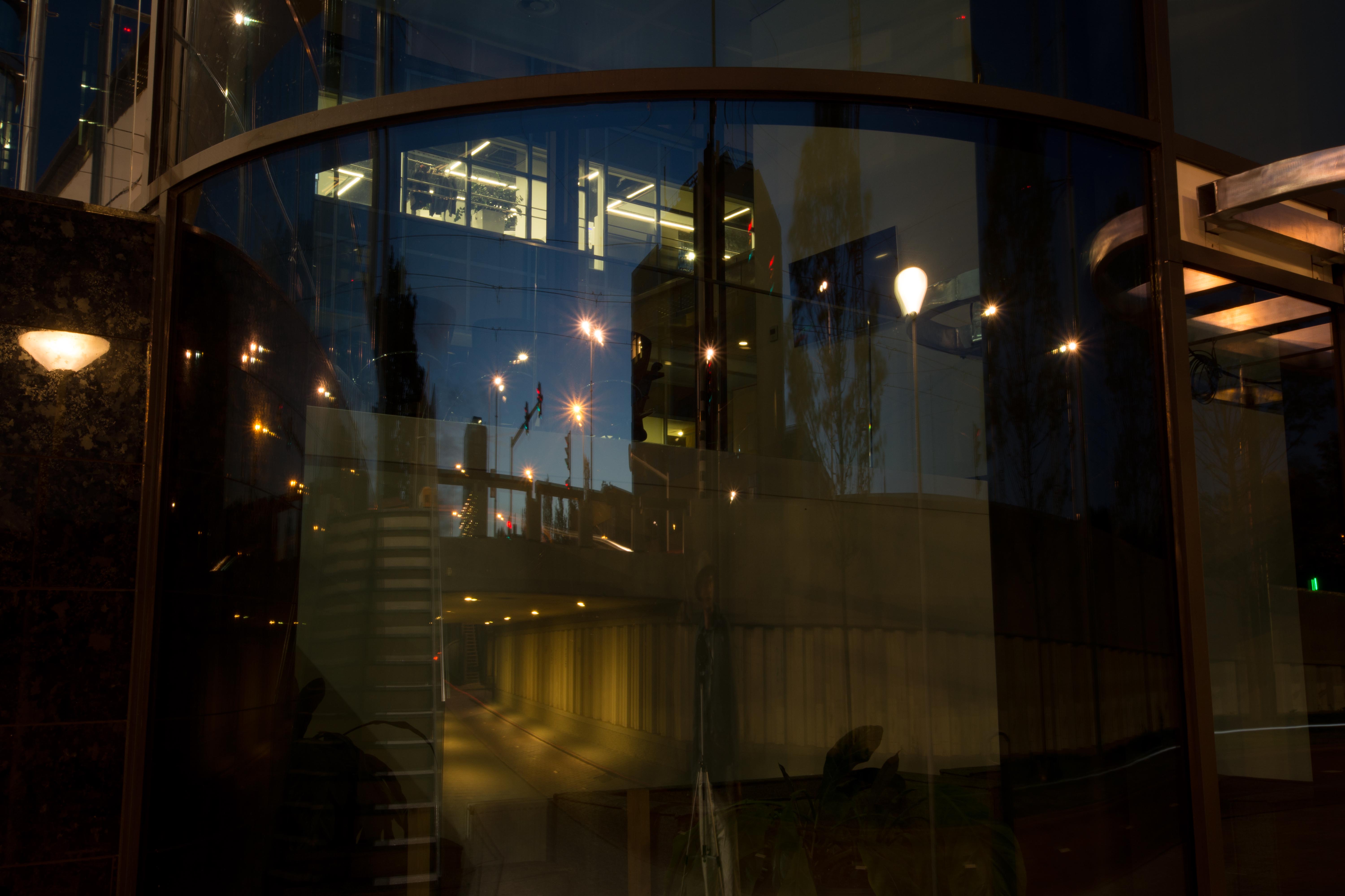 Okay I'm not doing it chronologically this time, because I wanted to see these 2 together. Both are entrances. One to a fancy bankbuilding, the other to our garage. Long exposure, zoomed in steps.