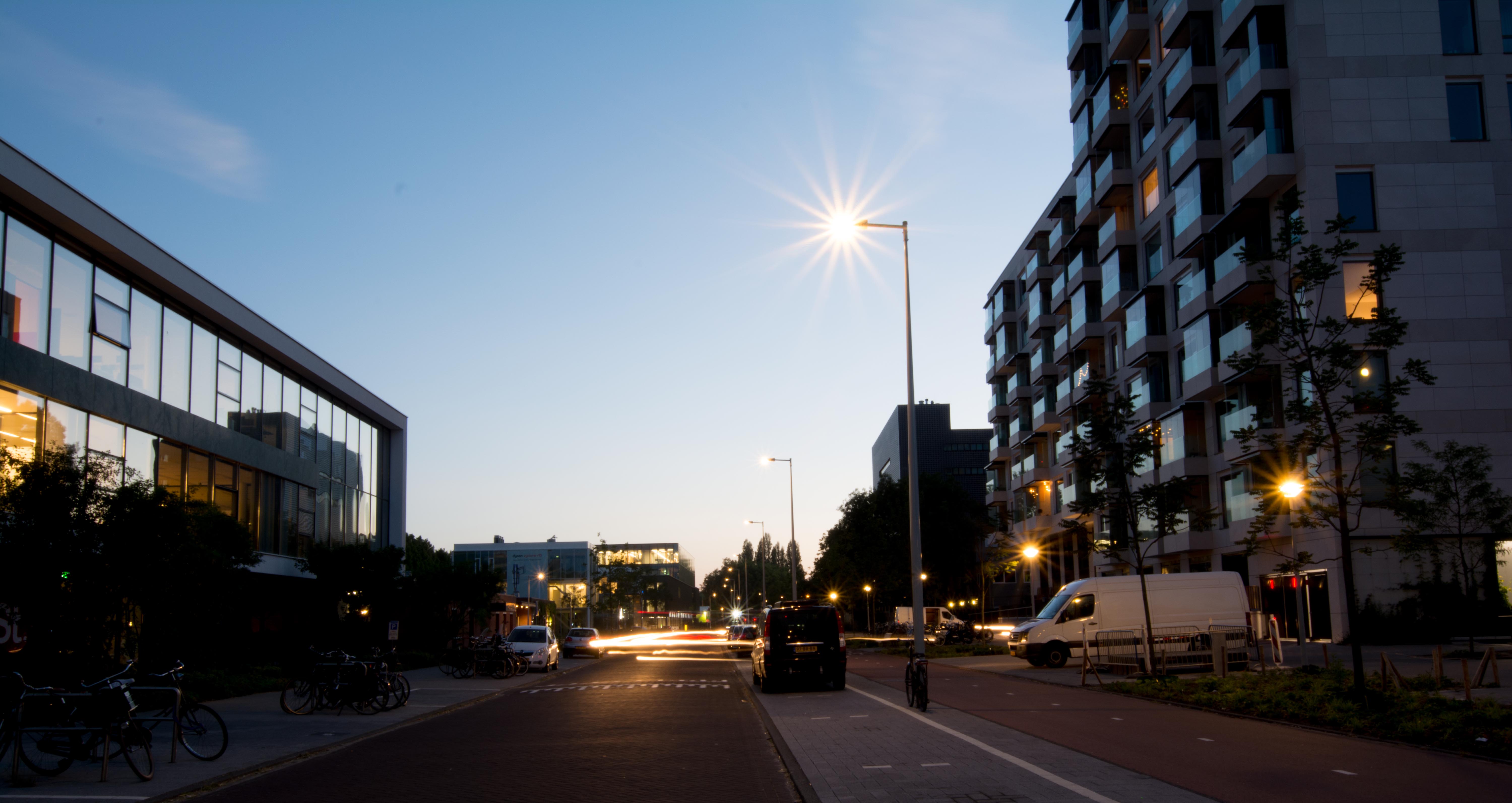 That building to the right, that's where we live now, for a year already. There was one of those crazy alien car drivers again. It made a turn.