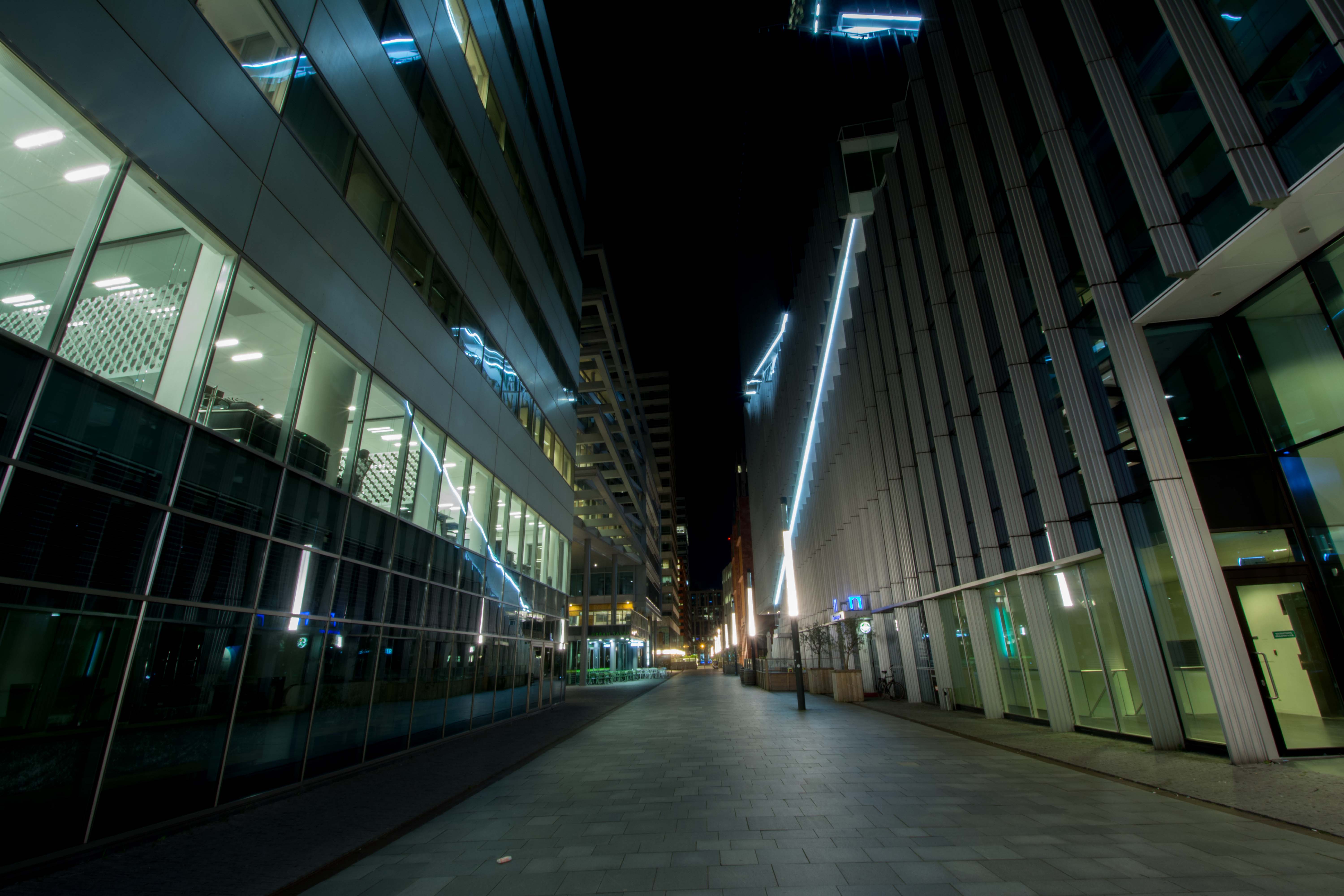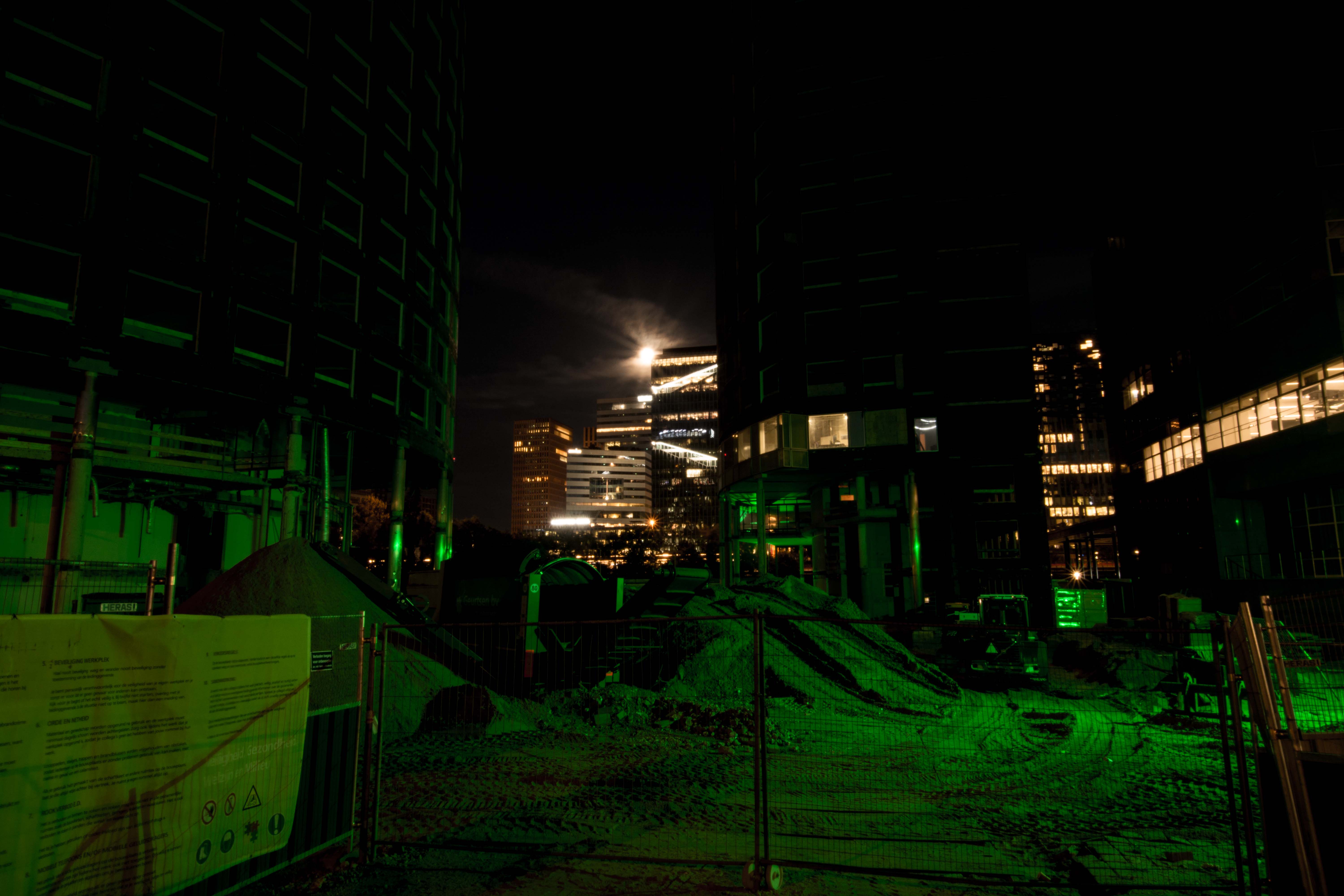 The area becomes quite abandoned at night. This pictured represented the gloomy feeling of some of the places. Does it give a hint of the fate of this world? Possibly. I bet the apocalypse will be lit in green. But for now it's just under construction.
