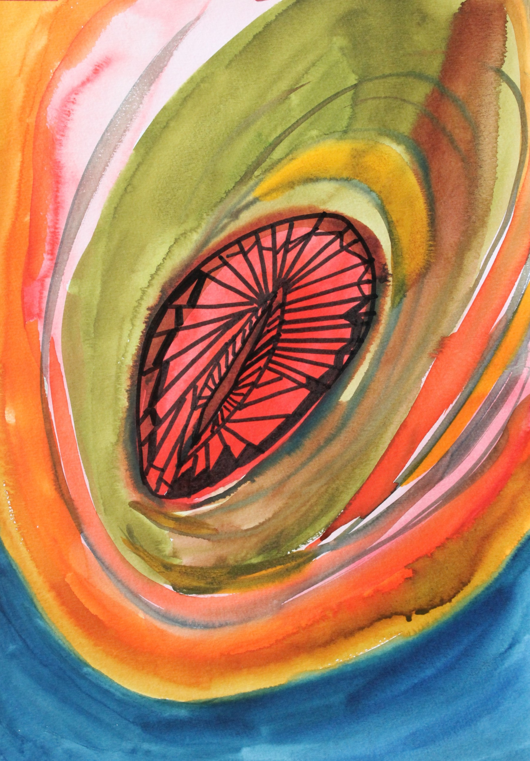 제 눈에는. 위 3장은 만다라로 가고 있는 중간 과정으로 보여요. 원으로 가고 있는 중간 과정이요. 만다라는 원 형태로 그리는 그림인데, 원의 중심과 가장자리 사이에서 무한한 가능성을 가집니다. 저한테 있어서 원의 의미는 저의 중심과 저 자신의 (자기 유지를 위한) 울타리인 것 같아요. 그래서 자기 중심과 자기 울타리를 찾아나가고 있는 과정의 그림 같아요.