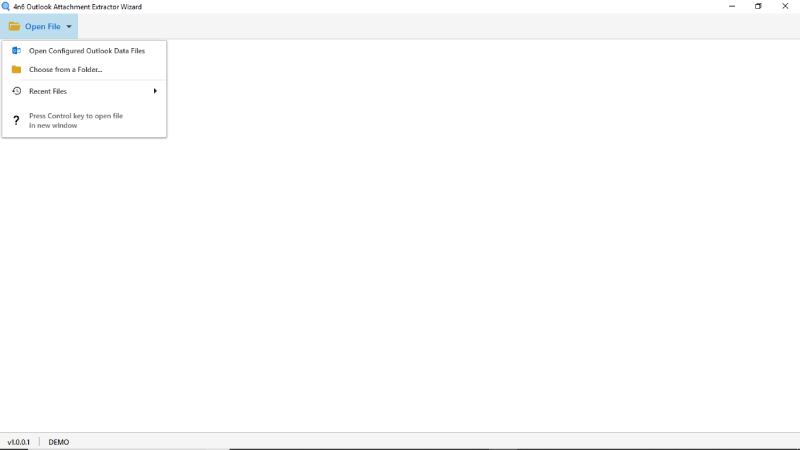 - Now, from the Open File option, add the required PST files to export attachments. Also, the tool gives an option to select from the recently added files.