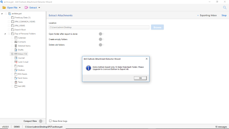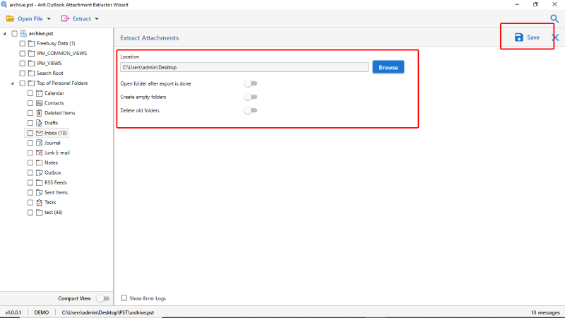- With tool to extract attachments from PST files, you can choose the destination path and save output files at desired location.