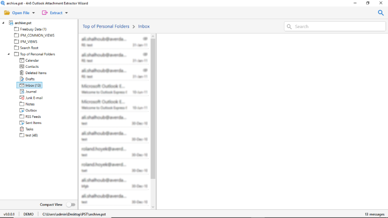 6 The tool gives a complete preview of all emails along with their attachments. Also, there is a compact view option using which you can choose to view system and user folders.