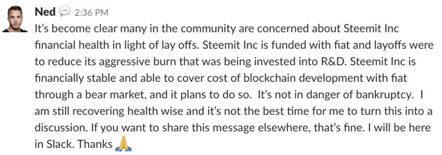 Thanks for making this video, this clears a lot up for me. I have to admit that I was one of the people who was adamant on Steemit Inc. providing us with more transparency about its finances. Ned's statement on that private Slack was definitely enough to keep my worries at bay.