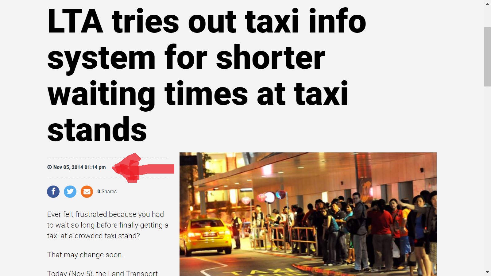 To sum up the content.. it says how THERE IS a big problem with the transportation system here.. specifically, the taxi waiting at the malls. They would install some heat sensors so that the taxi companies would know if there are people waiting and then just send some taxis there. Simple. Sounds good,