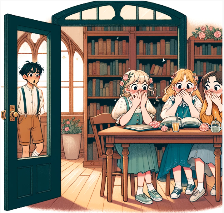 제니는 친구들이 계속해서 유니를 험담하는 걸 듣기 힘들었어요. 그 순간, 교실 문이 열리더니 유니가 들어왔어요! 친구들은 깜짝 놀랐고, 모두들 굳게 입을 다물고 서로 눈치를 보았어요. 제니는 놀란 얼굴로 소근거렸어요.