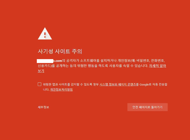 "사기성 사이트 주의" 크롬 세이프 브라이징