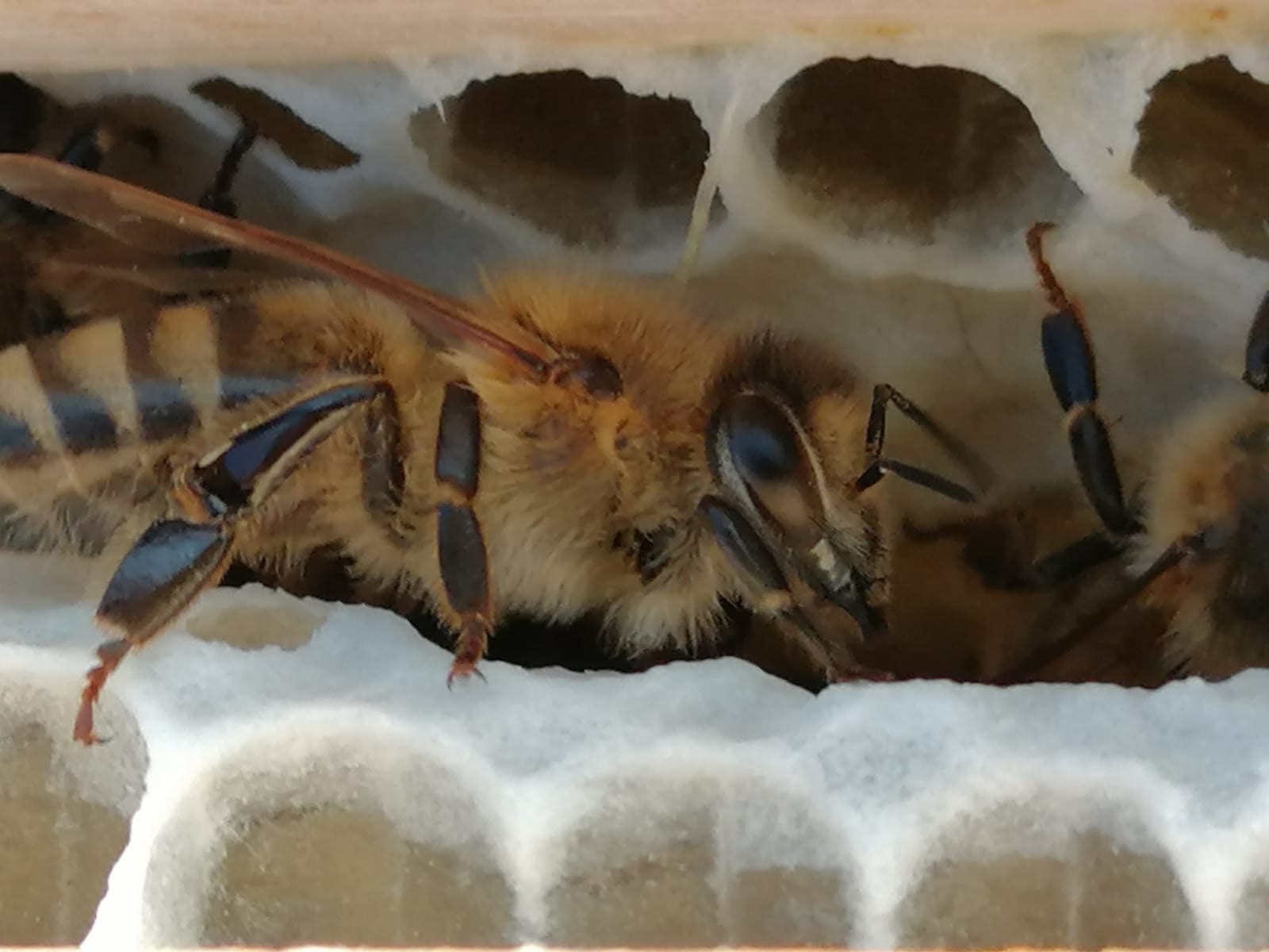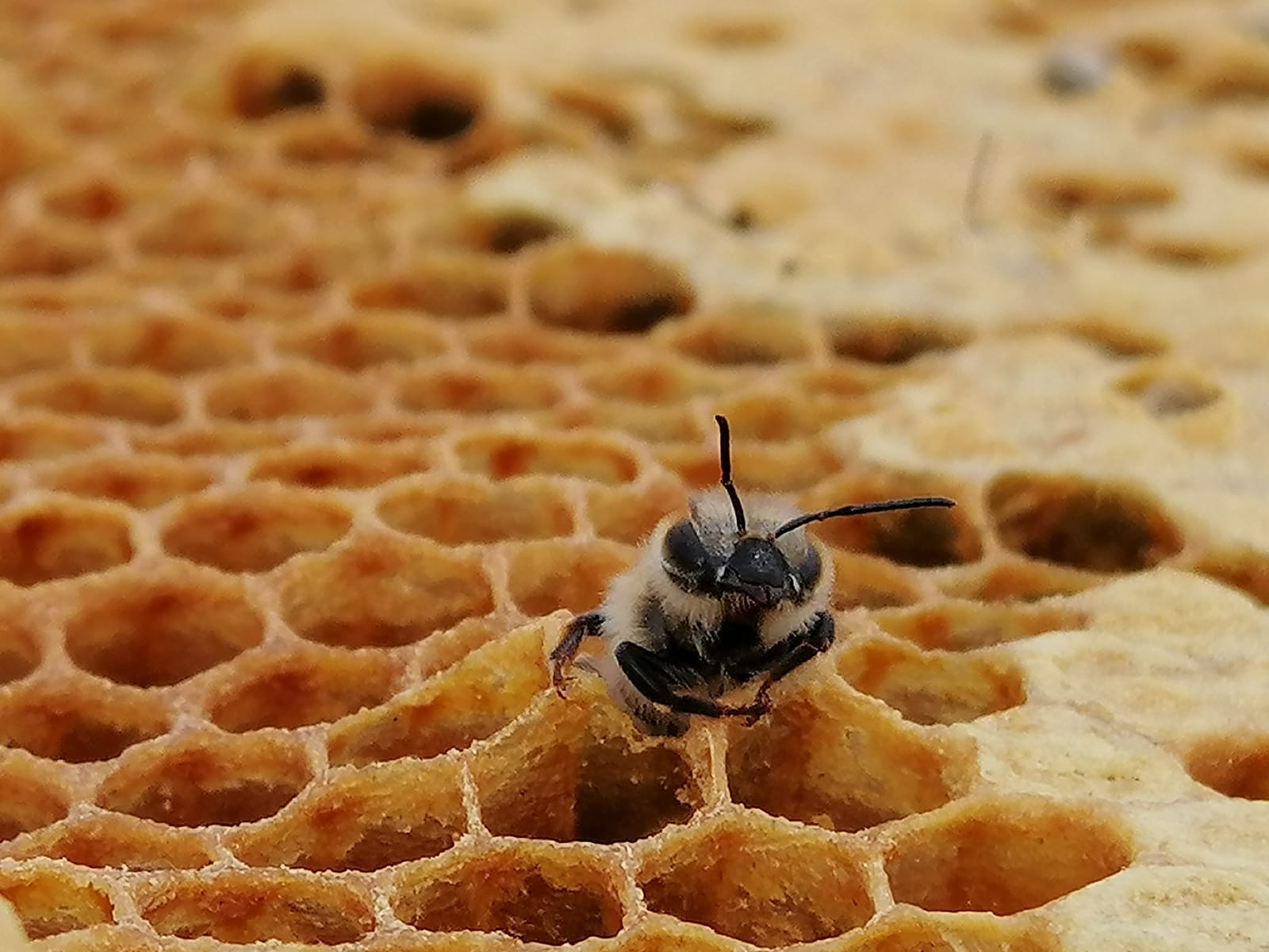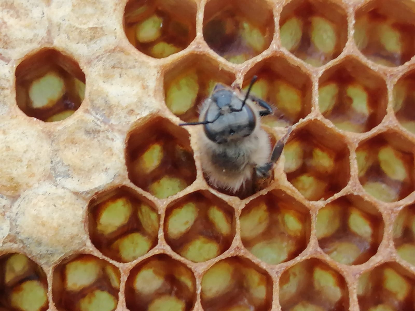 In erster Linie jedoch, schlägt das Imkerherz für die Hege und Pflege seiner Völker, wofür er in der Regel mit reicher Ernte des köstlichen und gesunden Naturprodukts Honig belohnt wird. Bei der direkten Arbeit am Bienenstock sind diese Fotos eines aus der Wabe schlüpfenden Bienchens und der durch den engen Wabengang krabbelnden Biene entstanden: