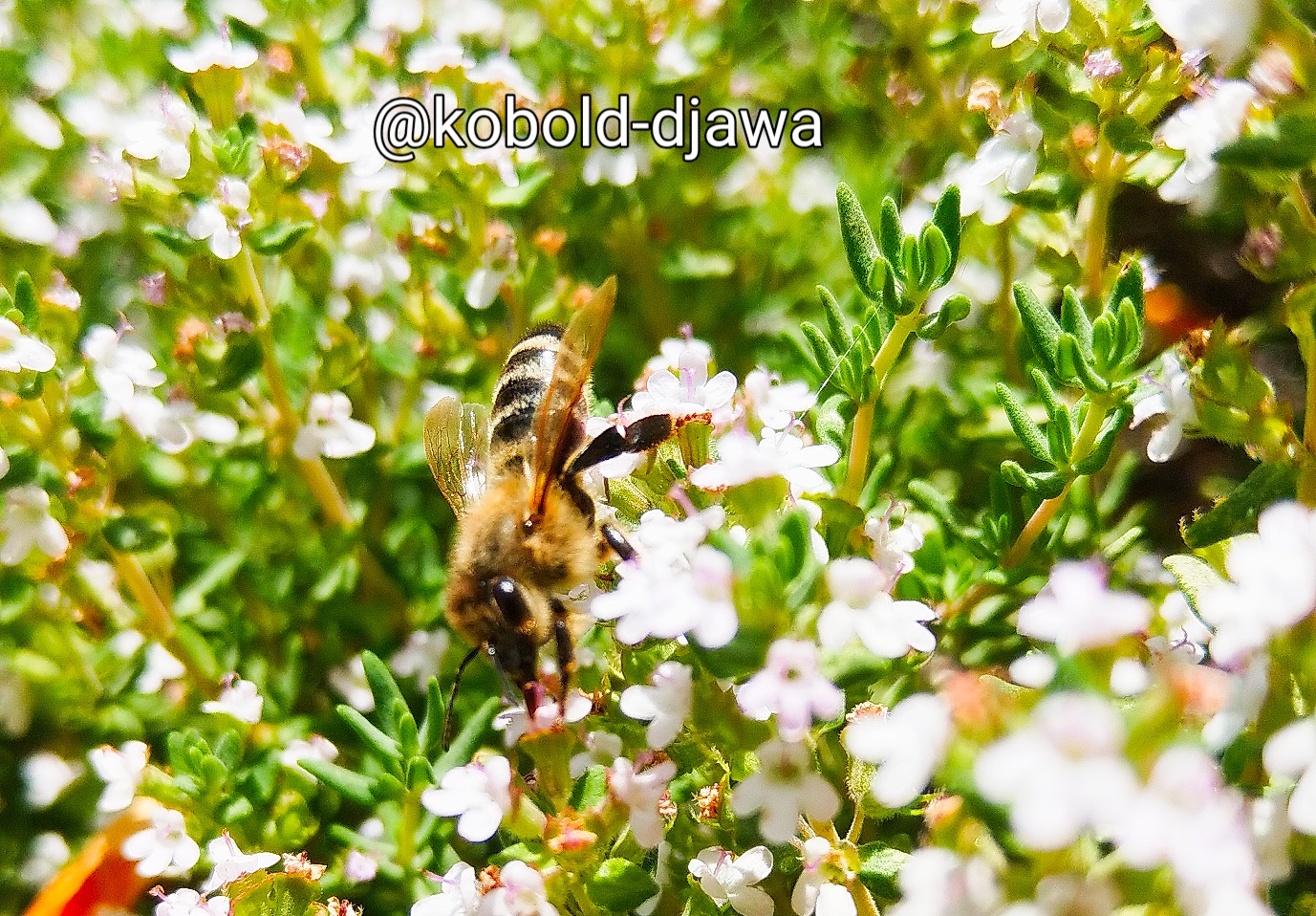 Our little Kobold princess loves pretending to be a bee or a bumblebee and acted as if she's eating the flowers.