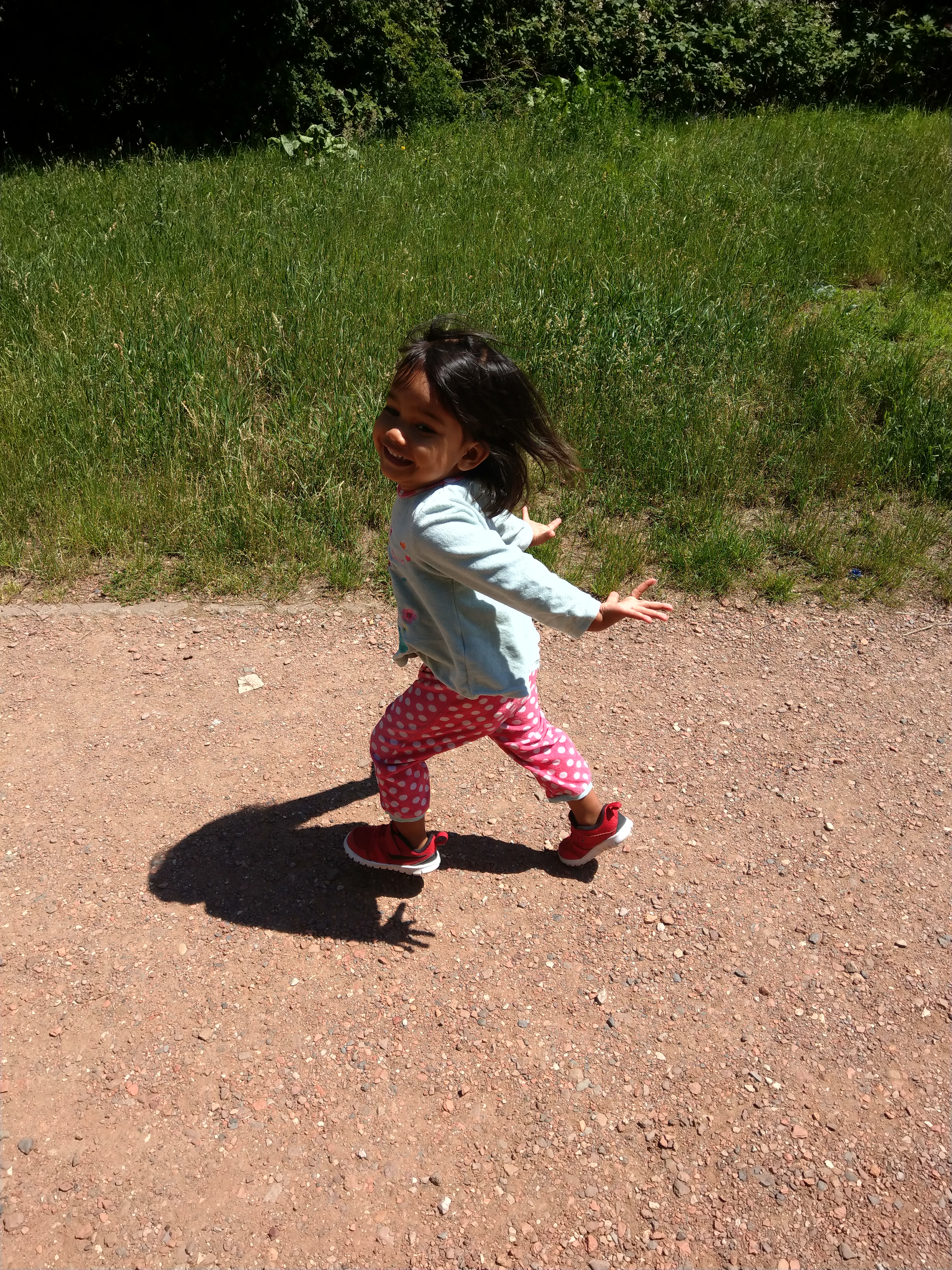 Auf dem Hinweg musste ich sie rechtzeitig warnen, nochmal zu rennen, sobald sie die Blumen bereits gekusst hat.