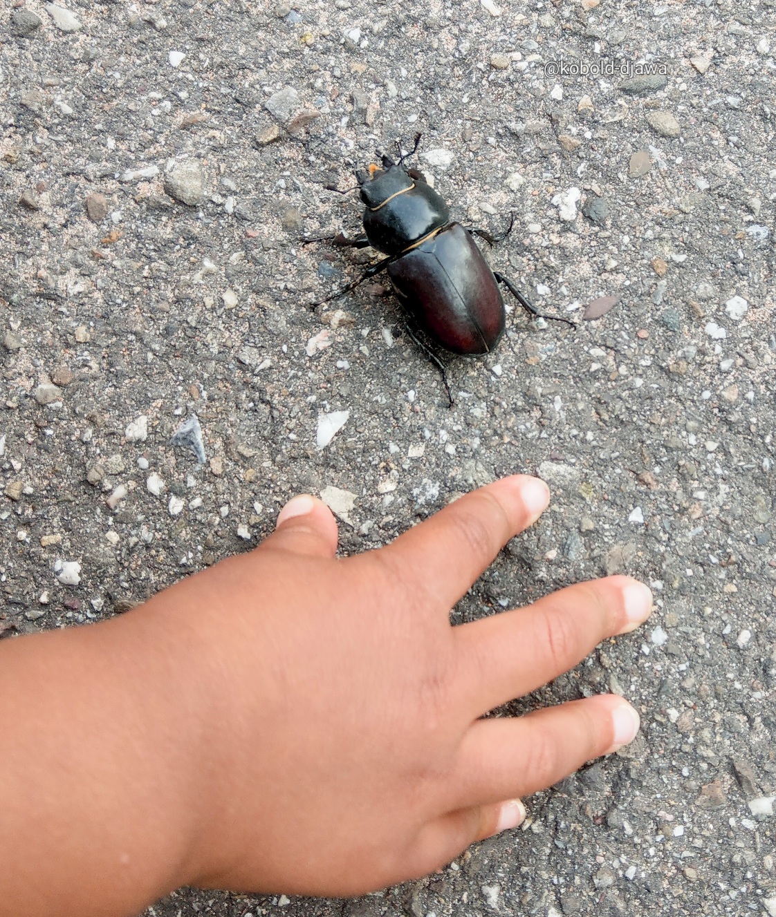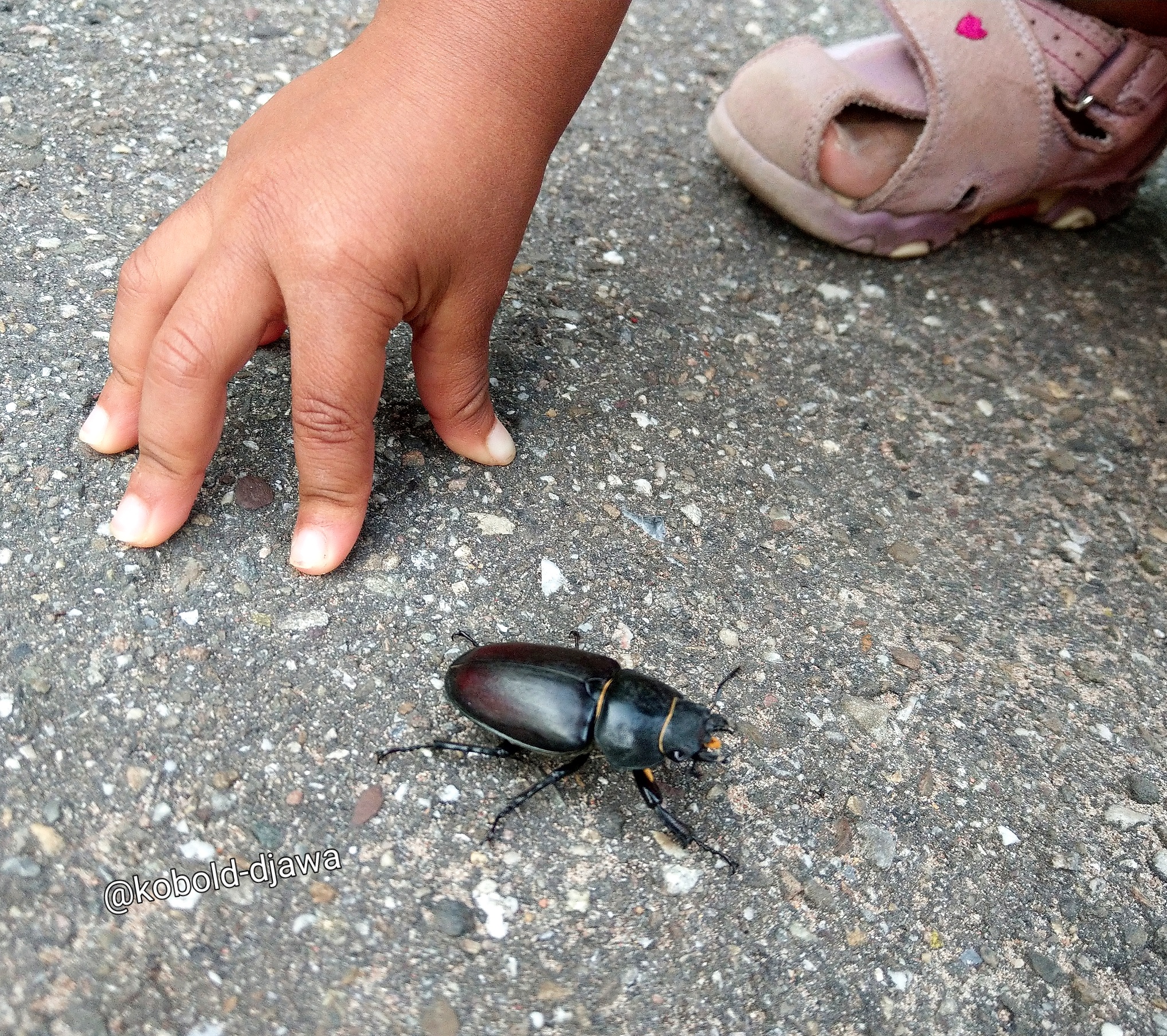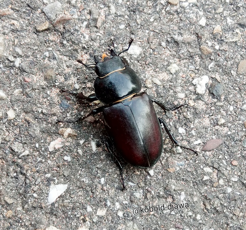 Wir haben diesen Käfer vor paar Tagen während unseres Spazierganges auf dem Bürgersteig erwischt. Zum Glück haben wir ihn nicht aus versehen tot getreten.