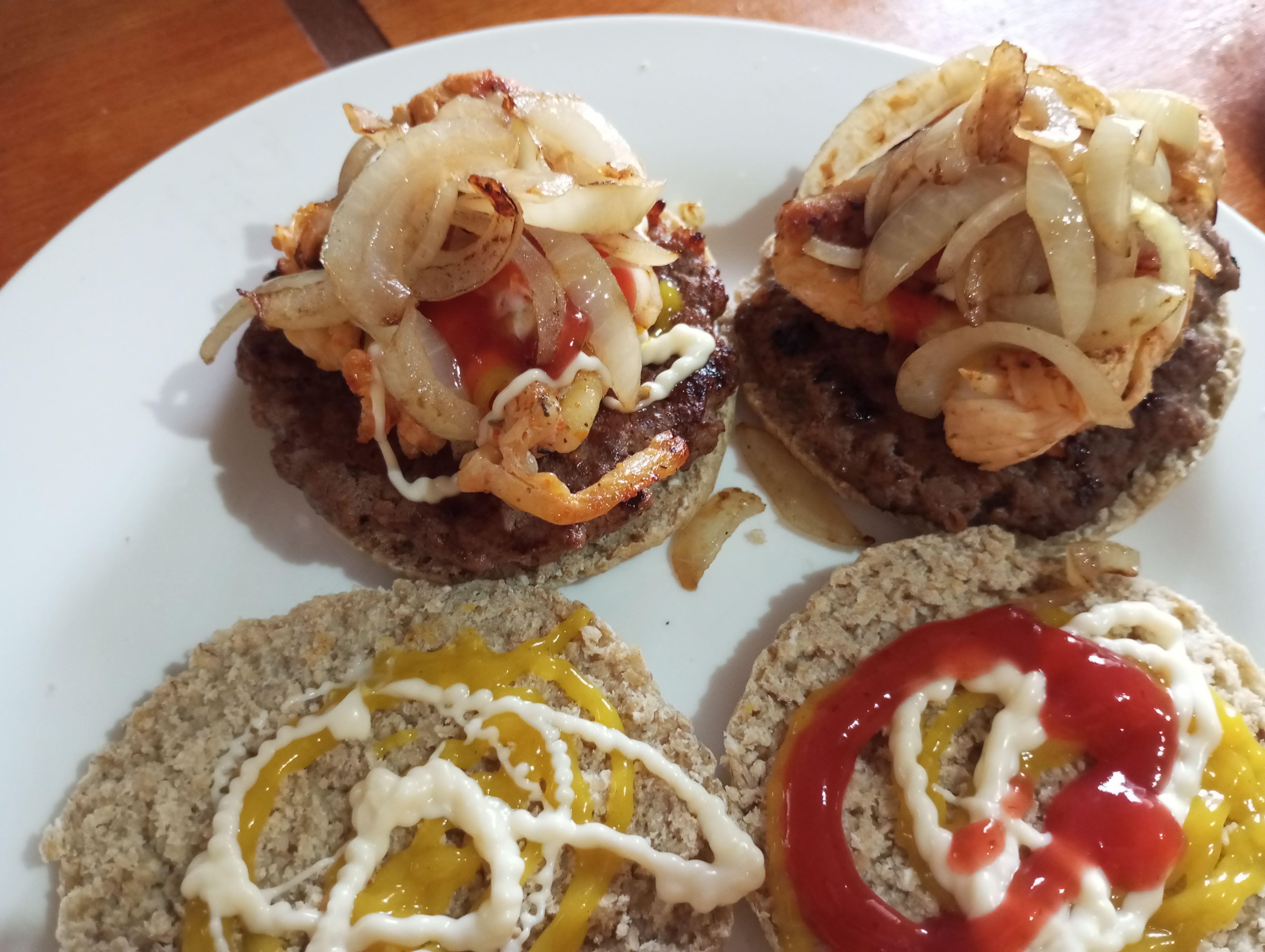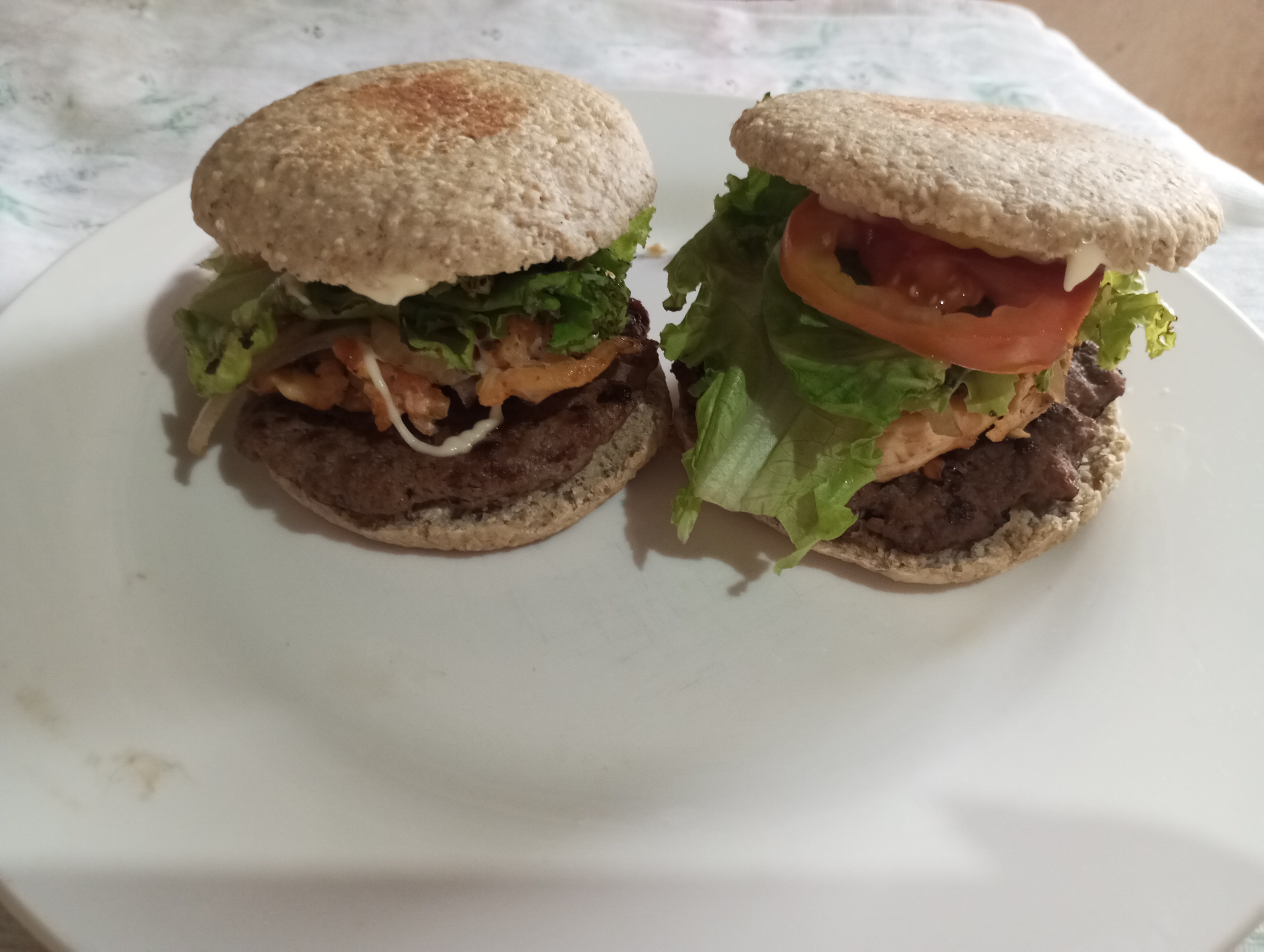 Amiga una hamburguesa bien saludable, oye que bueno que tu misma preparaste los panes de avena y la combinacion de las dos carnes esta genial. Bien explicada tu receta.
