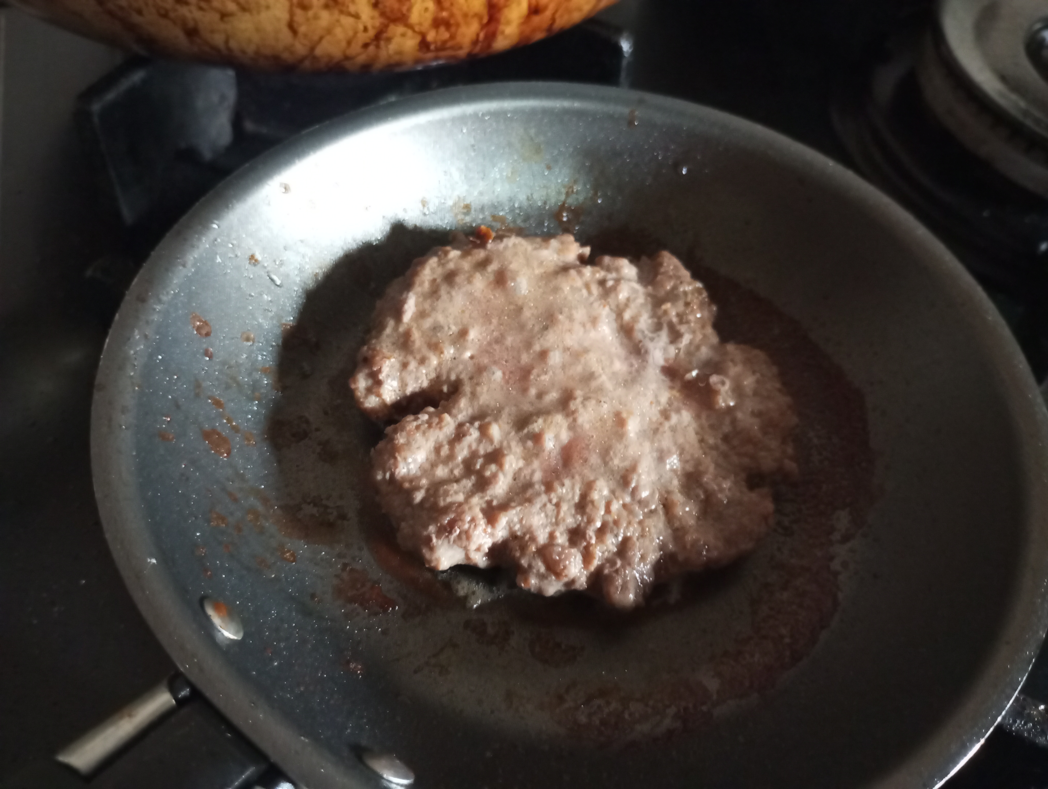 Al pasar los minutos puse a calentar dos sartenes con unas gotas de aceite y así poner a cocinar las dos carnes a la vez, aproximadamente unos 7 minutos y ya estaban listas para empezar a preparar las hamburguesas.