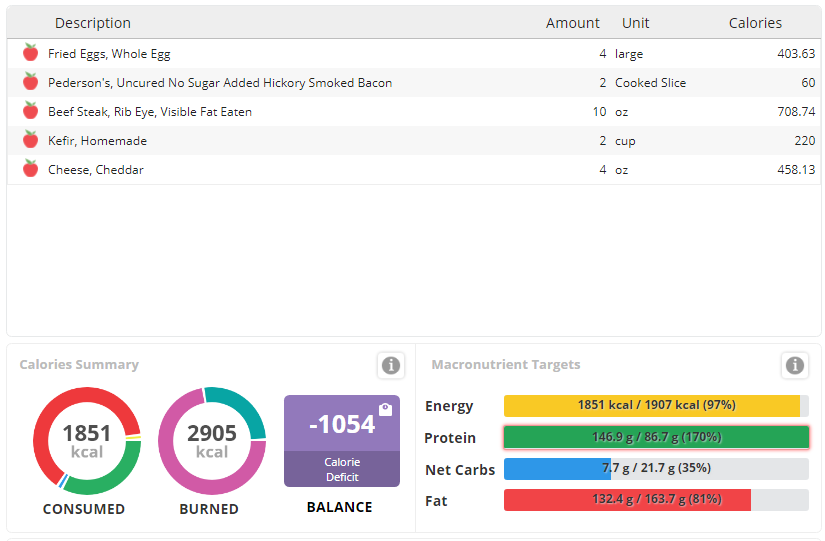 Still a thousand calories down if I was eating every day. I seem to remember this was the problem before. It's hard to be sure I'm getting enough calories to prevent down-regulation of my metabolism.