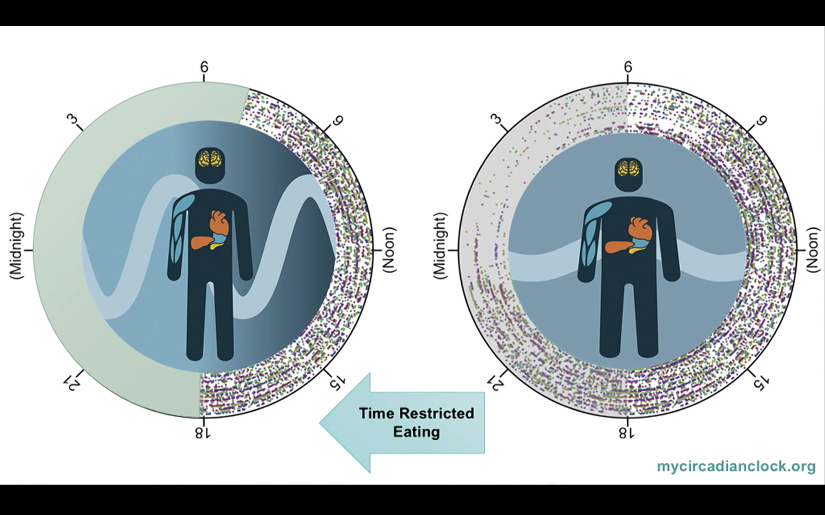 As stated yesterday, somebody who eats within 10 hours has much better circadian rhythm whereas somebody who eats within 15 hours may not.