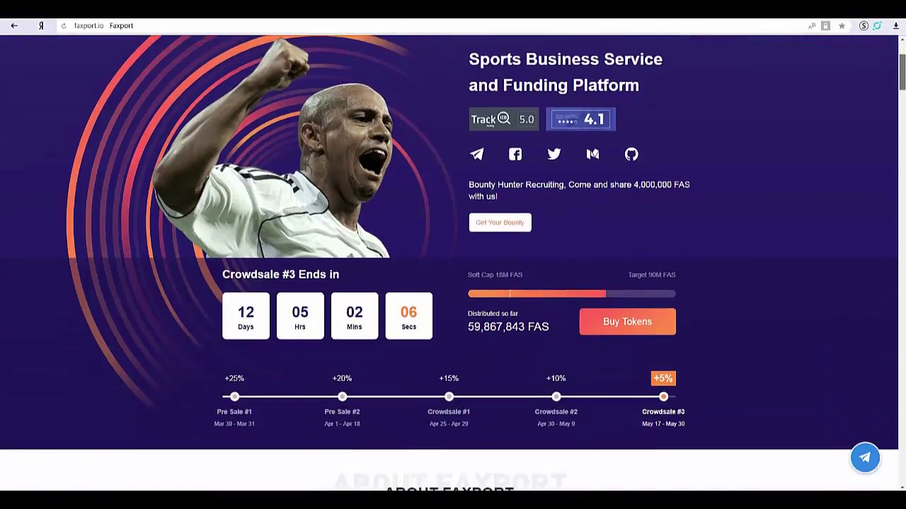 E com base nesses problemas, outros problemas igualmente sérios são gerados. Mas a empresa Faxport está comprometida não só em resolvê-los e eliminá-los, mas também em simplificar bastante a indústria esportiva! O conceito da ideia da empresa é simples, mas engenhoso. A Faxport quer restaurar a confiança de seus clientes, criar uma plataforma de rede global de comunicação para atletas, melhorar e desenvolver cada vez mais a indústria esportiva. A empresa promete otimizar a distribuição de recursos no esporte, reduzir custos econômicos. O mais interessante é a introdução da inteligência artificial, que tornará mais fácil verificar os dados e a identidade da outra parte ao comunicar e implementar transações.