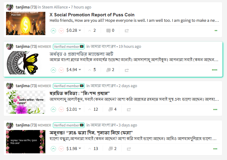 অথরের নাম - তানজিমা।। জাতীয়তা - বাংলাদেশী। পেশাঃ ফিন্যান্স বিভাগ থেকে বিবিএ শেষ করেছে এবং বর্তমানে একজন গৃহিনী । শখঃ নতুন কিছু শিখতে, নতুন মানুষের সাথে মিশতে তার খুব ভাল লাগে ,এছাড়াও তাঁর ছবি আঁকতে, পড়তে, লিখতে ফটোগ্রাফি, রেসিপি এবং ডাই বানাতে খুব পছন্দ তাঁর । এর বাইরেও তিনি বিভিন্ন ধরনের রেসিপি তৈরি করতে খুব পছন্দ করে। স্টিমিটে যুক্ত হনঃ ২০২১ সালের অগস্ট মাসে।