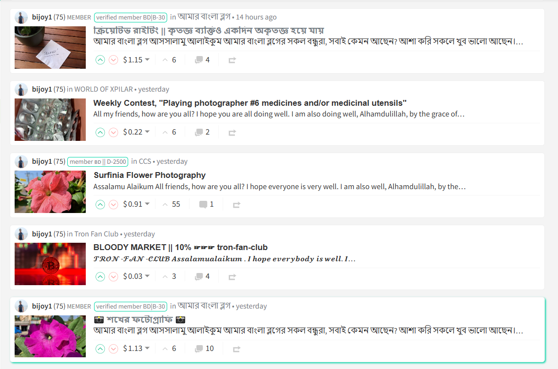 অথরের নামঃ আবদুল্লাহ আল সাইমুন। স্টিমিট আইডির নাম @bijoy1 এবং একই নামের একটি ডিসকর্ড অ্যাকাউন্ট রয়েছে। তিনি একজন ছাত্র। বাংলাদেশের ফেনী জেলায় বসবাস করেন। তিনিএই প্ল্যাটফর্মের নিয়মিত ব্যবহারকারী। এই প্ল্যাটফর্মে তার কাজগুলো সবার সাথে শেয়ার করতে পছন্দ করেন। আশা প্রকাশ করেন ভবিষ্যতে এই স্টিমিট প্ল্যাটফর্মে গুরুত্বপূর্ণ অবদান রাখতে পারবেন। তিনি ঘুরতে পছন্দ করেন, তার পাশাপাশি বাইক চালানো, ফটোগ্রাফি করা, বই পড়া, নতুন নতুন কাজ করা ইত্যাদি তার কাছে অনেক ভালো লাগে। সর্বশেষ একটাই কথা, বাঙালী হিসেবে তিনি গর্বিত। তাই আমার বাংলা ব্লগ কমিউনিটিতে সবসময় আন্তরিকতার সাথে কাজ করতে ইচ্ছুক তিনি।