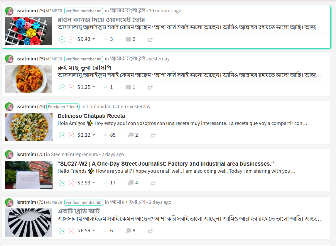 এক নজরে তাঁর বিগত সপ্তাহের পোস্টগুলি :