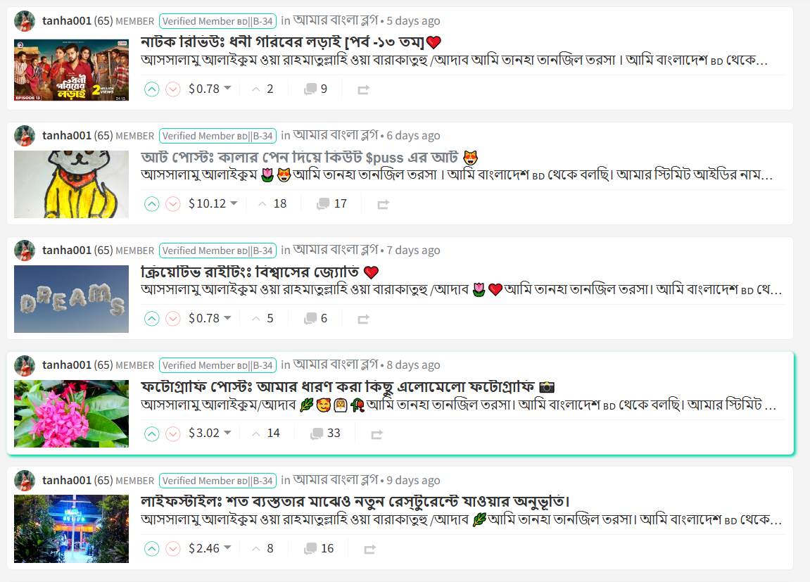 অথরের নাম: তানহা তানজিল তরসা। স্টিম আইডি: @tanha001। বাংলাদেশের নাগরিকএবং বিবাহিতা। তার এক ছেলে সন্তান আছে। তিনি ফটোগ্রাফি, গান গাইতে,রান্না করতে ও বাইকে ঘুরতে অনেক পছন্দ করেন। তার জন্মস্থান কালিগঞ্জ থানা ঝিনাইদহ জেলায়। পেশায় এক গৃহিনী। পাশাপাশি তিনি এখনো পড়াশোনা করছেন। বর্তমানে অনার্স তৃতীয় বর্ষের ছাত্রী। হাজবেন্ড এর চাকুরীর সূত্রে পাবনা চাটমোহর এ বসবাস করছেন। তিনি স্টিমিট এ জয়েন করেছেন ডিসেম্বর ২৬, ২০২৩।