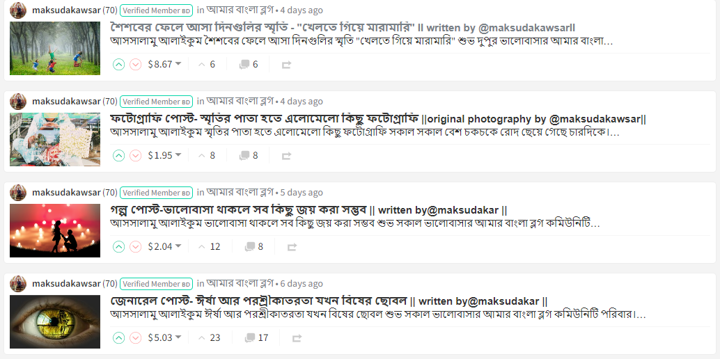 "আমার বাংলা ব্লগ" আজকের ফিচারড আর্টিকেল রাইটার - @maksudakawsar