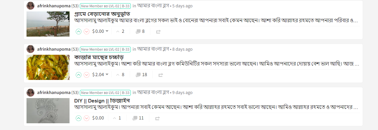 আমার বাংলা ব্লগ" আজকের ফিচারড আর্টিকেল রাইটার - @afrinkhanupoma কে দেখে খুব ভালো লাগলো। ভালো কিছুর কদর আমার বাংলা ব্লগ সব সময় মূল্যায়ন করে আর সেটার একটি প্রমাণ হল আমার বাংলা ব্লগের এই উদ্যোগটি।