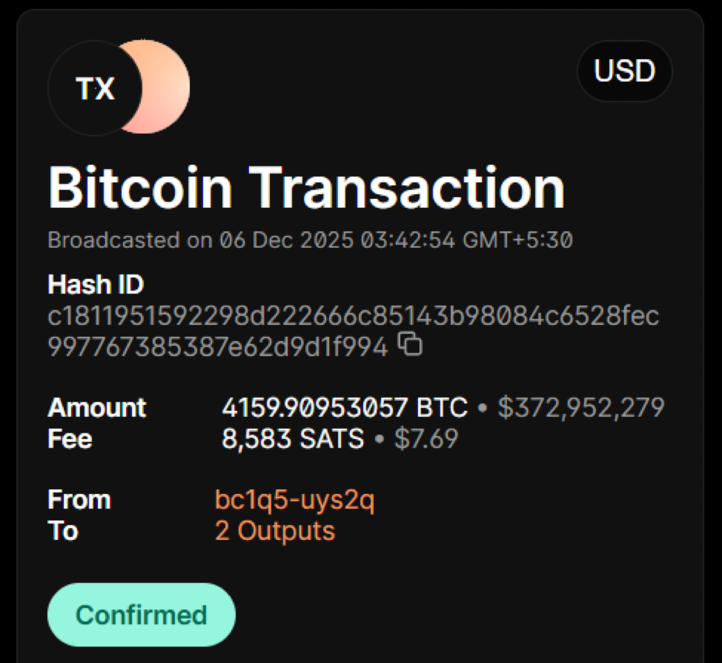 Only on bitcoin can $373 mil be transferred for a $7 fee!!