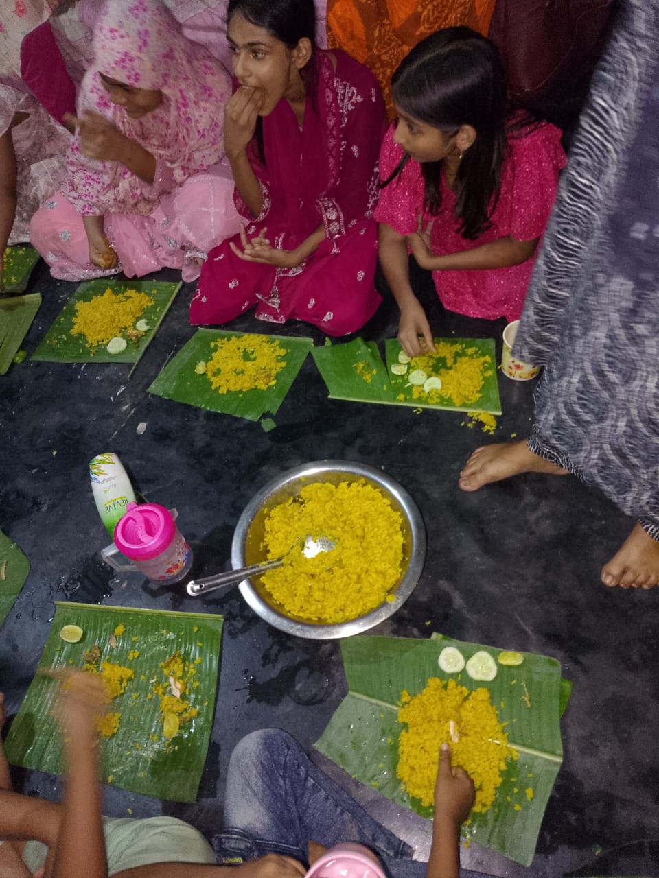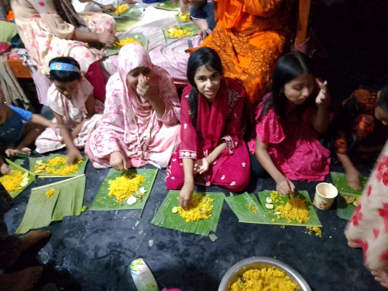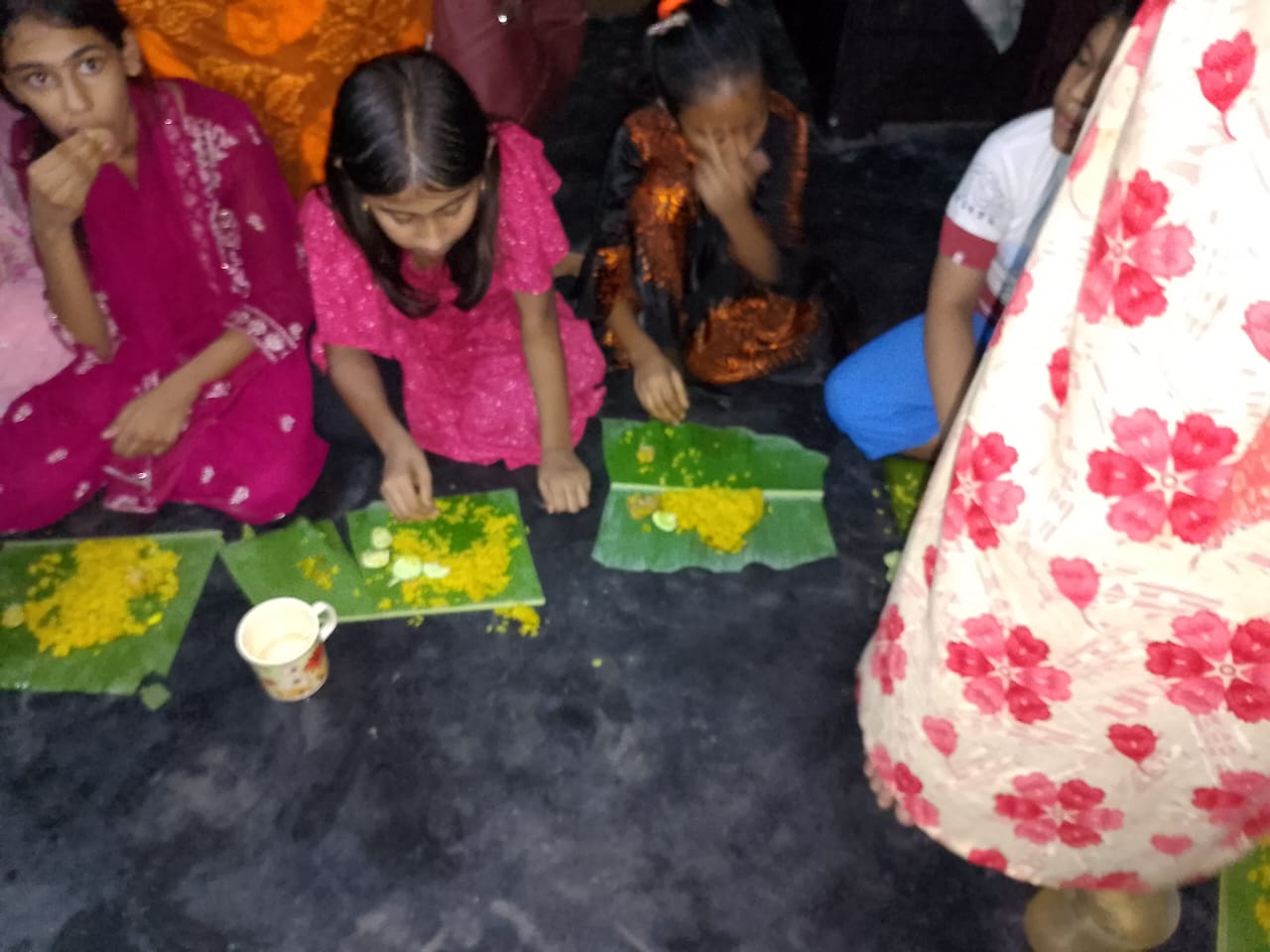 আমার মেয়ে তার বান্ধবীদের সাথে খেতে বসে গিয়েছিল। আসলে তাদের সবাইকে দেখে মনে হচ্ছে তারা অনেক খেতে পারবে।সত্যি এ সব খাওয়ার থেকে আনন্দ বেশি হয়। যদিও আমার মেয়ে খিচুড়ি খায় না। তবে বান্ধবীদের সাথে কলার পাতা নিয়ে বসেছে।আসলে আমরা ছোটবেলা এমন ভাবে পিকনিক করতাম। কিন্তু এখনকার বাচ্চাদের তেমন দেখা যায় না বলেই চলে। আমার জা সব বাচ্চাদের খাবার দিচ্ছে। এদিকে যে যার মতো ফটোগ্রাফি করে নিচ্ছে। বেশ ভালো লেগেছিল তাদের আনন্দ দেখে।