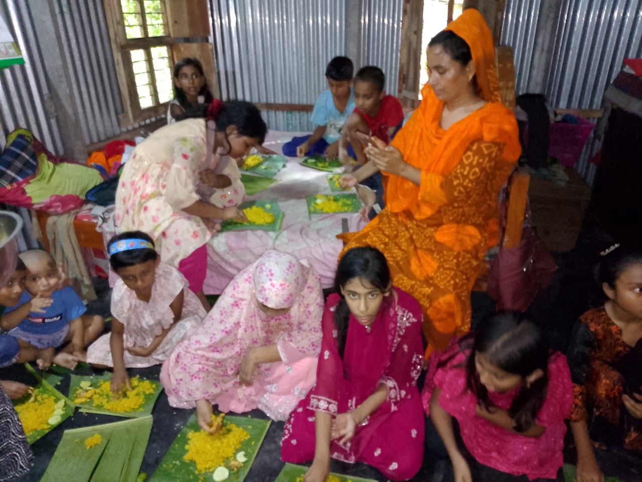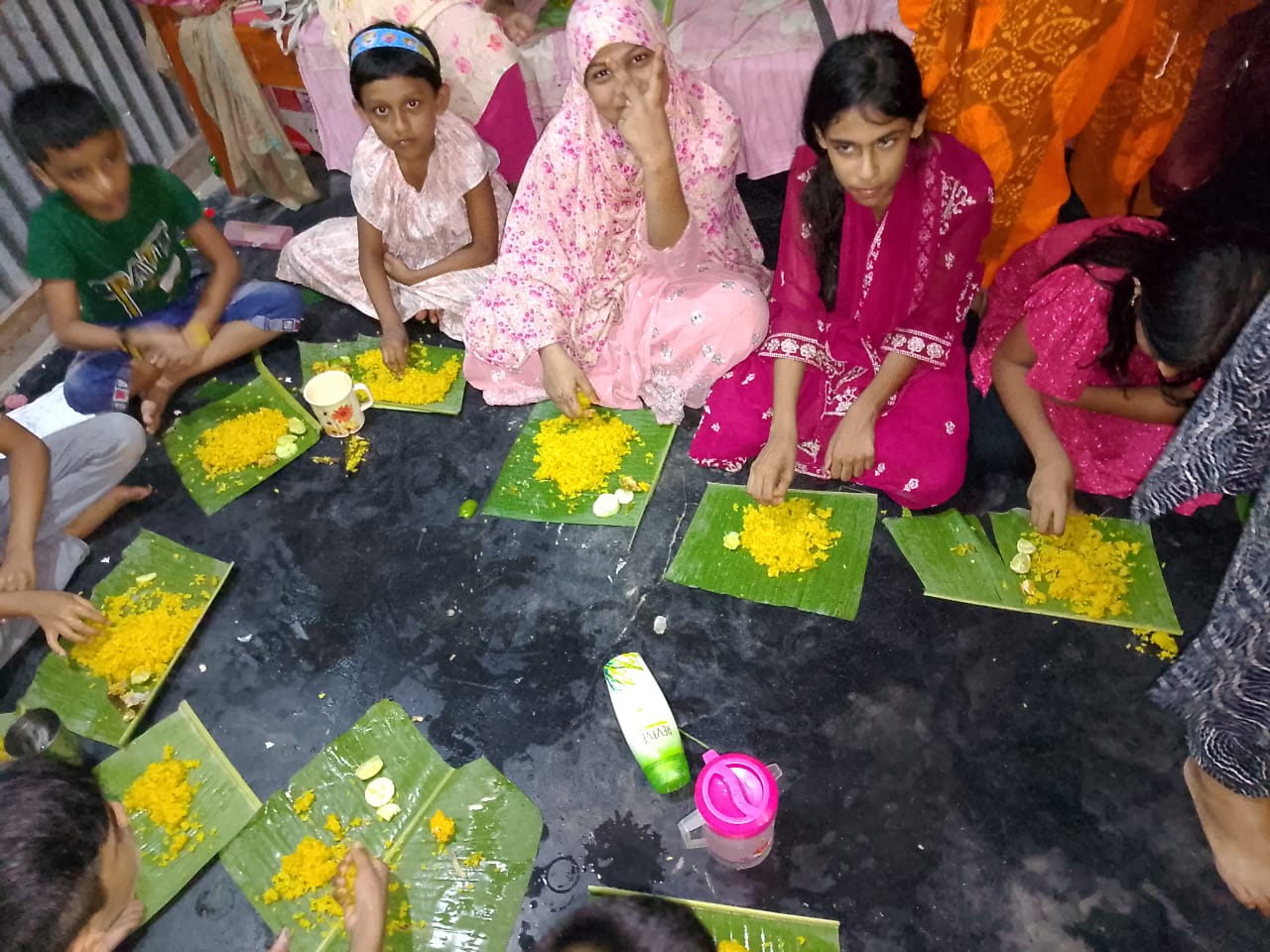 আমরা সবাই মিলে রান্না কাজ শুরু করলাম।আসলে বাচ্চাদের জন্য করা তবে তারা তো কোন কিছু করতে পারে না। আবার তারা অনেকে খিচুড়ি খায় না।যেমন আমার মেয়ে কখনো খিচুড়ি খায় না।তবে সবাই বাচ্চা তাই তাদের মা ও সাথে ছিল। তবে মেইল দ্বায়িত্ব ছিল আমাদের ওপরে। যাইহোক আমরা সবাই মিলে বেলা দুটোর আগেই রান্না শেষ করেছি।তবে রান্না করা দেখে বাচ্চারা অনেক খুশি। মনে হচ্ছে তারা সব খেয়ে ফেলবে।