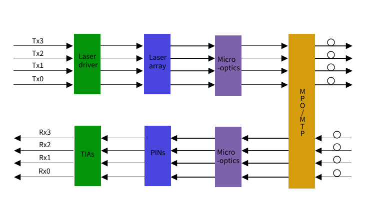 What is parallel optics? Parallel optical technology is a special optical communication technology that transmits and receives signals at both ends of the link. Parallel optical transceiver modules are usually used to achieve high-speed signal transmission at both ends. Parallel optical technology is a cost-effective solution for 4×50G, 8×50Gbps transmission.